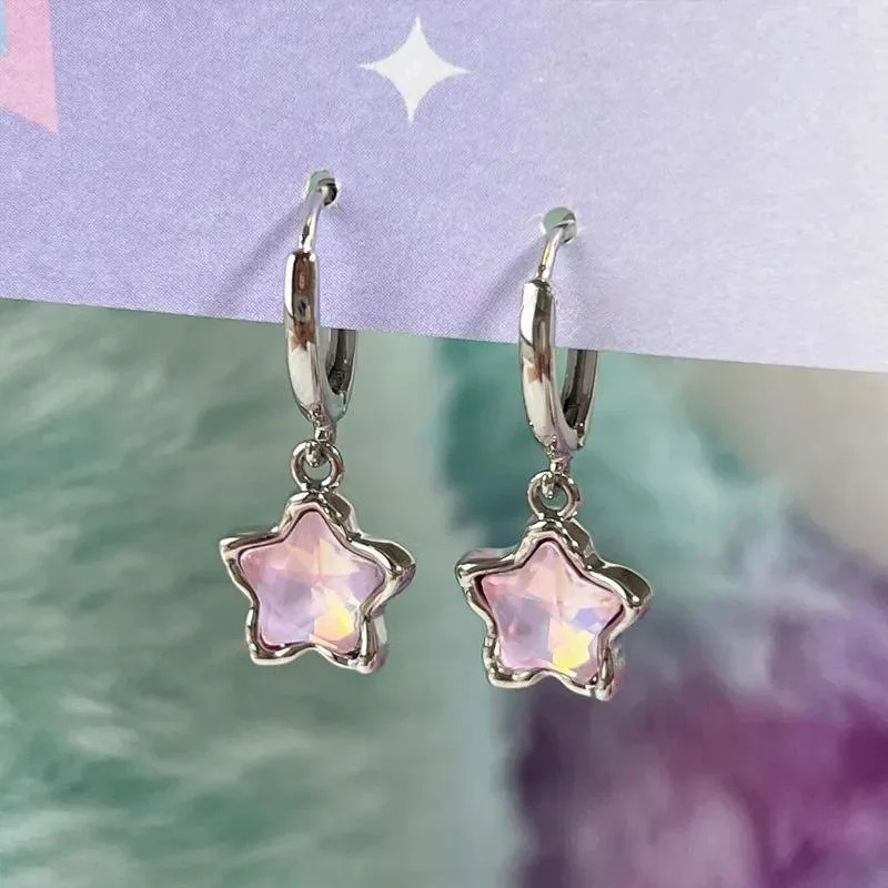 Lunivop Gothic Cute Dream Fairy Moonlight Stone Star Pendant Earrings For Egirl Y2K EMO 2000s Harajuku Goth Vintage Jewelry Accessories