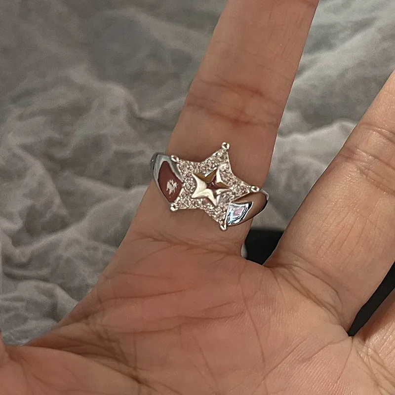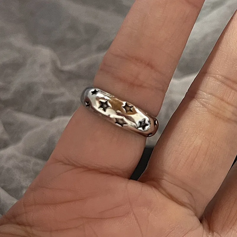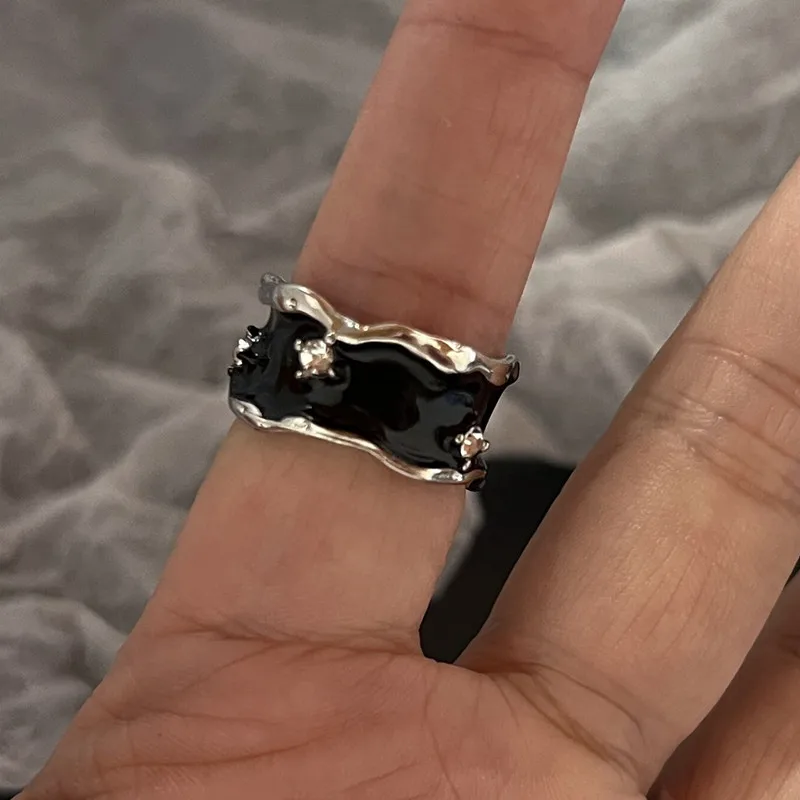 Lunivop Gothic Irregular Gemstone Ring Aesthetic Girls Adjustable Black Stone Ring Women's Liquid Punk Ring Vintage Jewelry Accessories