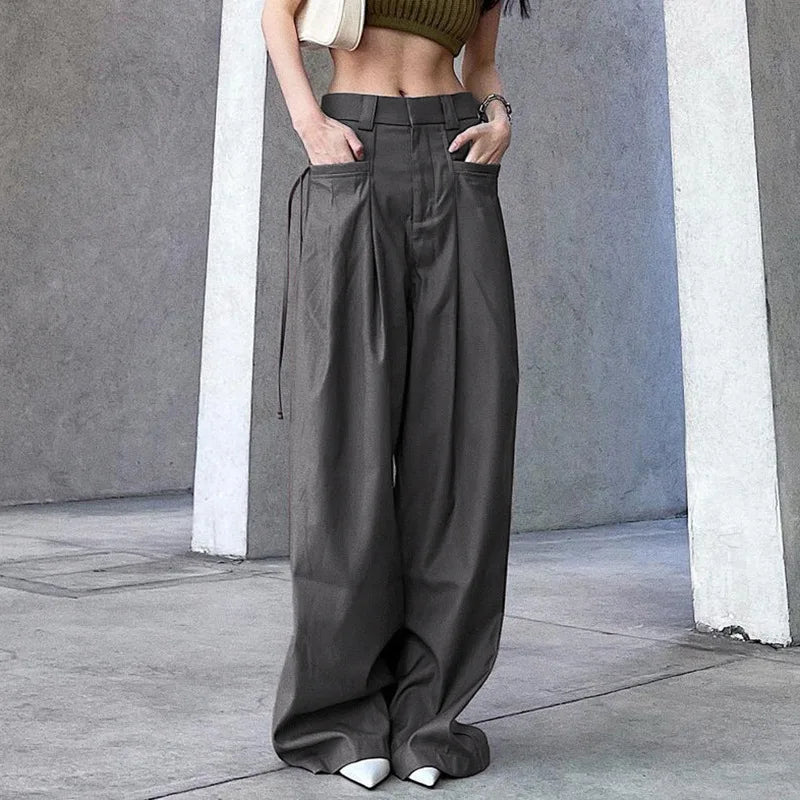 Lunivop Gothic Punk Bandage Wide Leg Pants 90s Baggy Pant Women Oversize Low Rise Y2k Academic Pants Streetwear E-girl Style