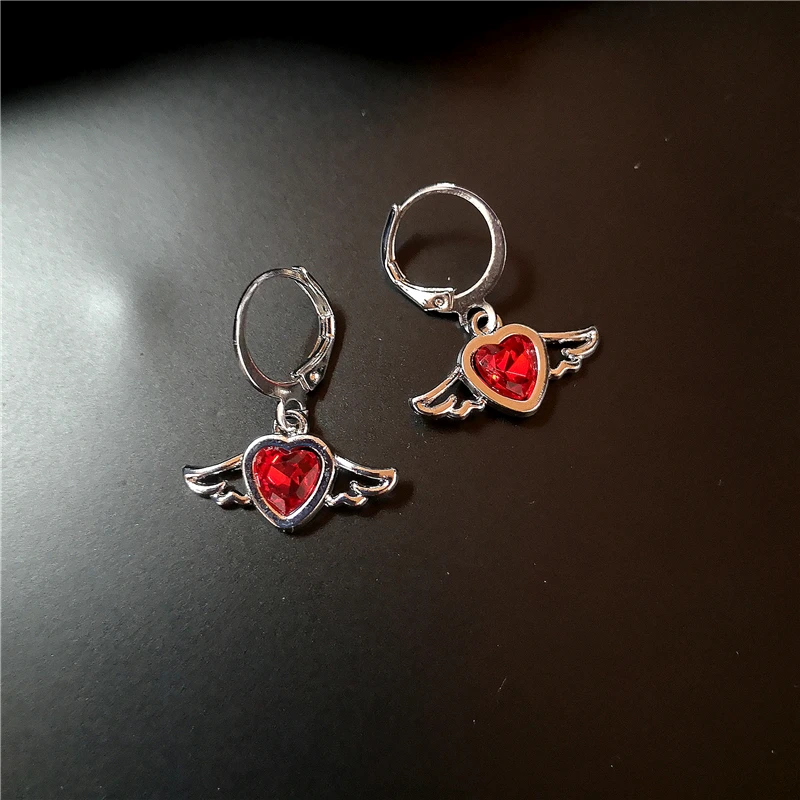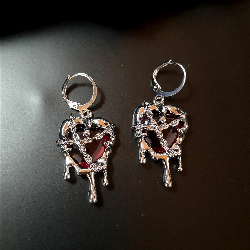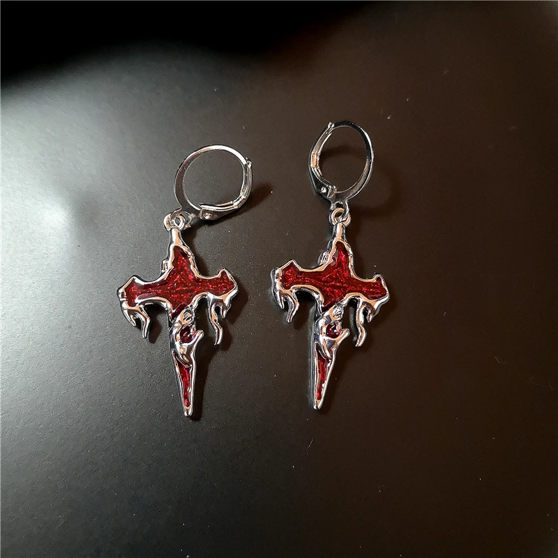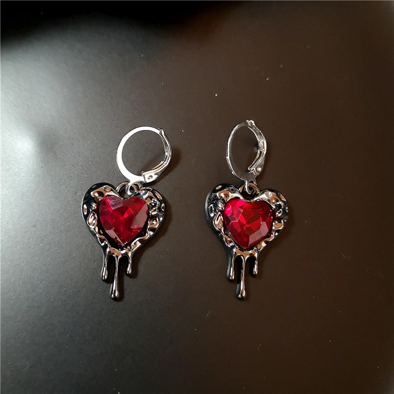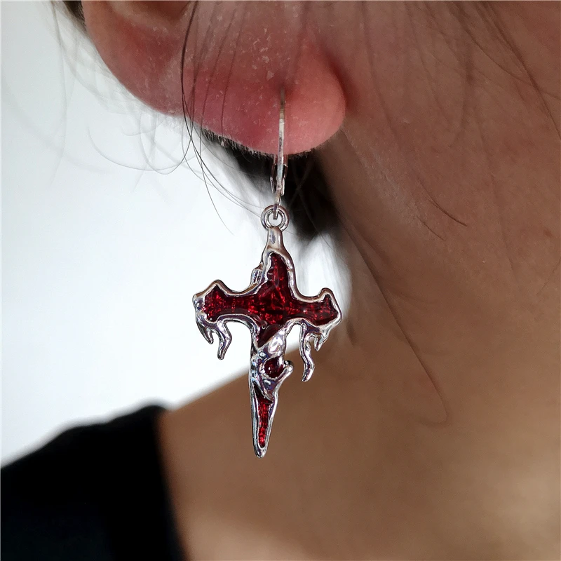 Lunivop Gothic Punk Irregular Red Crystal Heart Cross Pendant Earrings For Women Men Grunge EMO Aesthetic Rave Jewelry Y2K Accessories