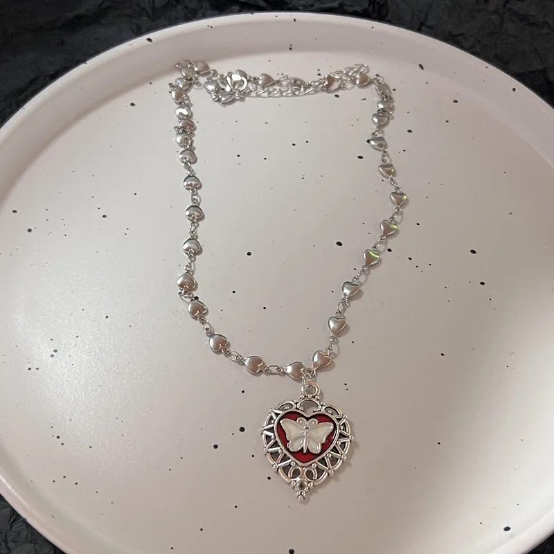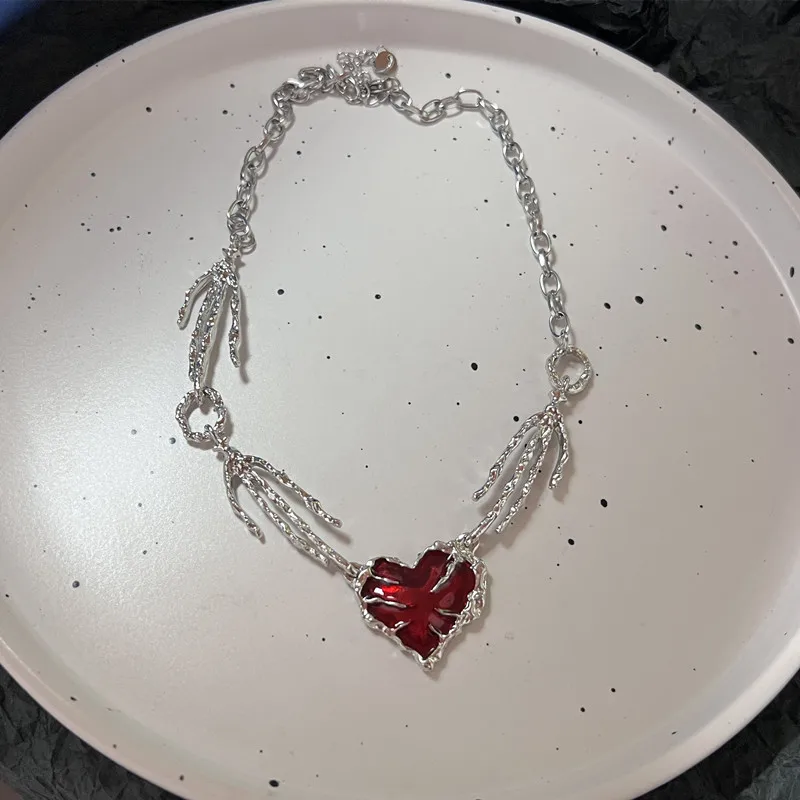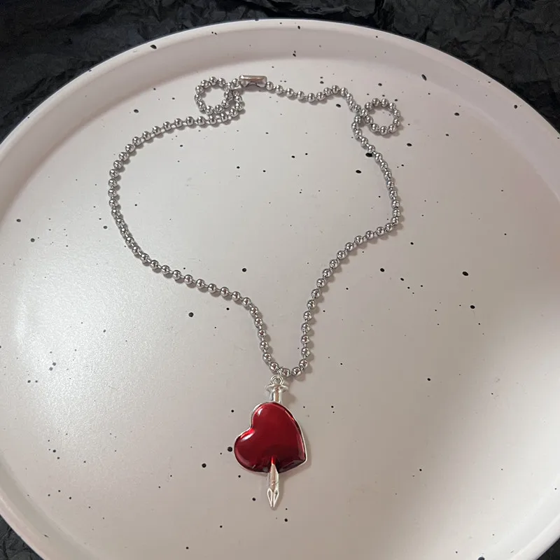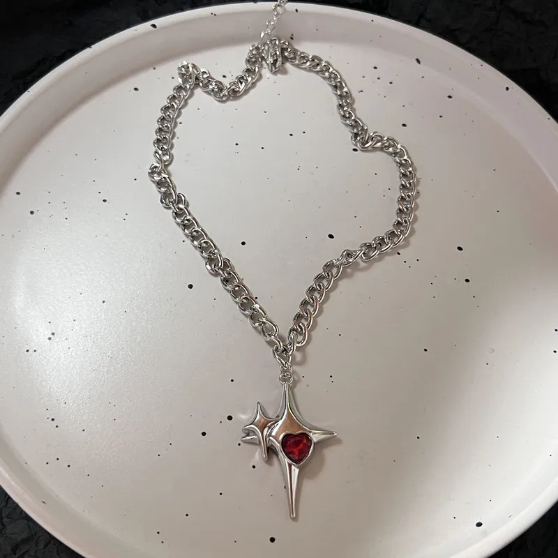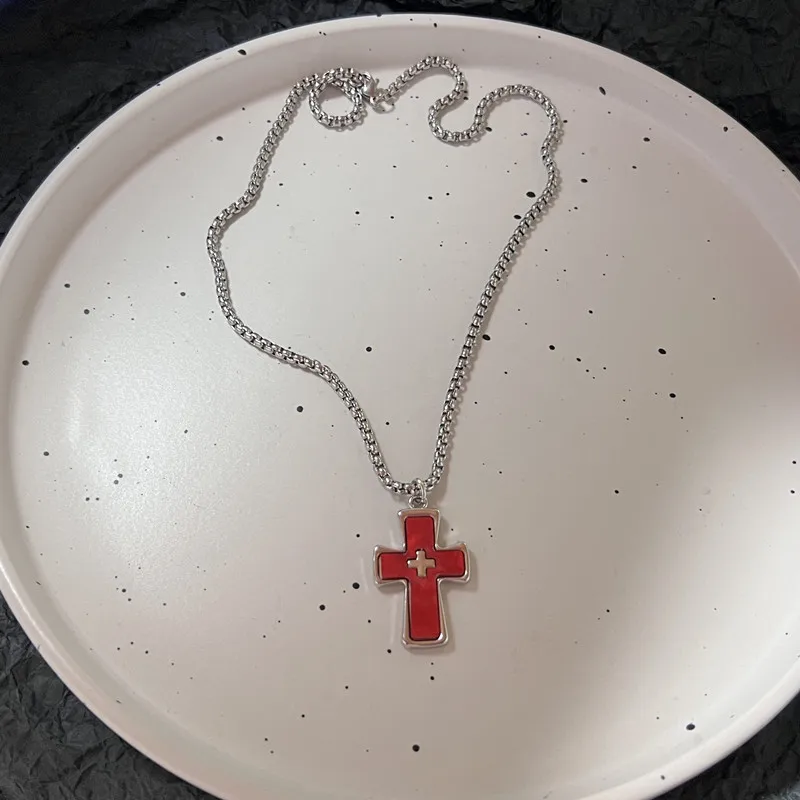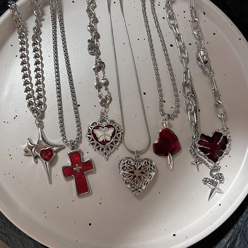 Lunivop Gothic Religious Cross Red Heart Pendant Necklace Set for Women Grunge Hip Hop Necklace Jewelry Gifts