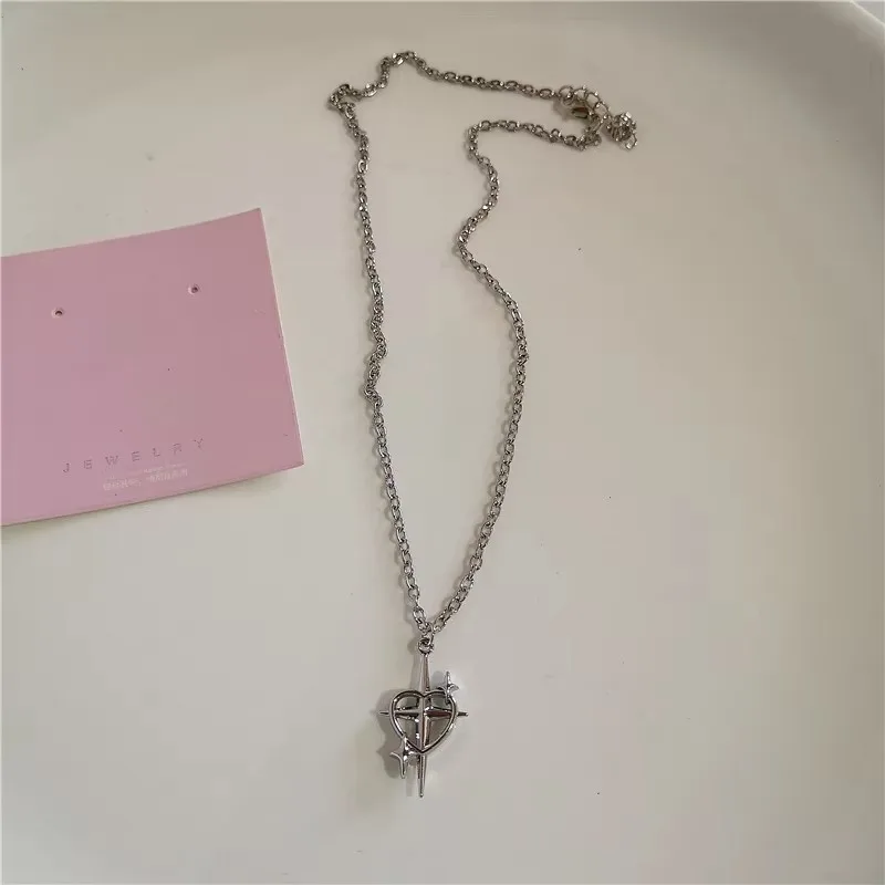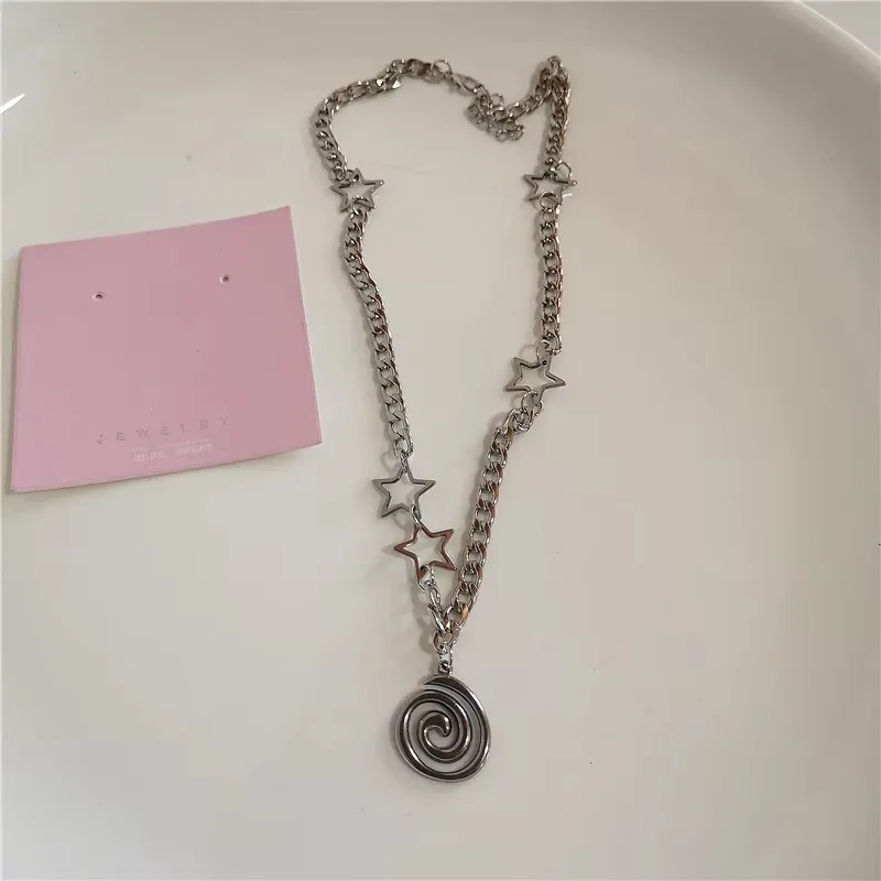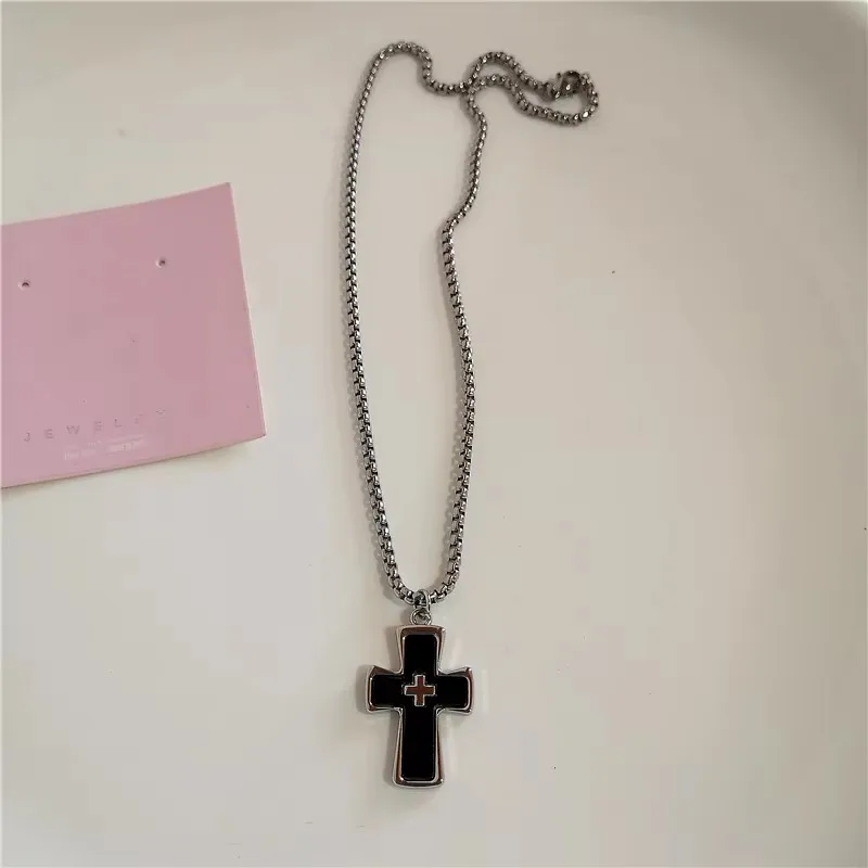 Lunivop Gothic Stainless Steel Spiral Sun Black Cross Pendant Necklace Choker Star Charm Necklace For Men Women Grunge Y2K Neck Jewelry
