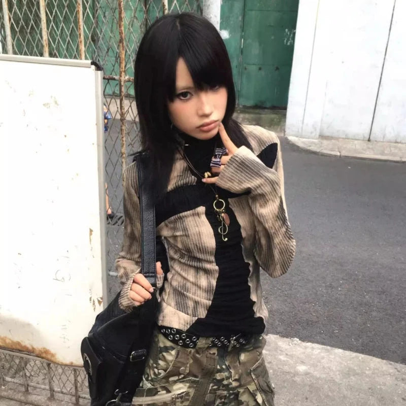 Lunivop Gothic Vintage Y2k T-shirt Women Japanese Harajuku Print Grunge Top 2000s Patchwork Punk Long Sleeve T-Shirt Aesthetics