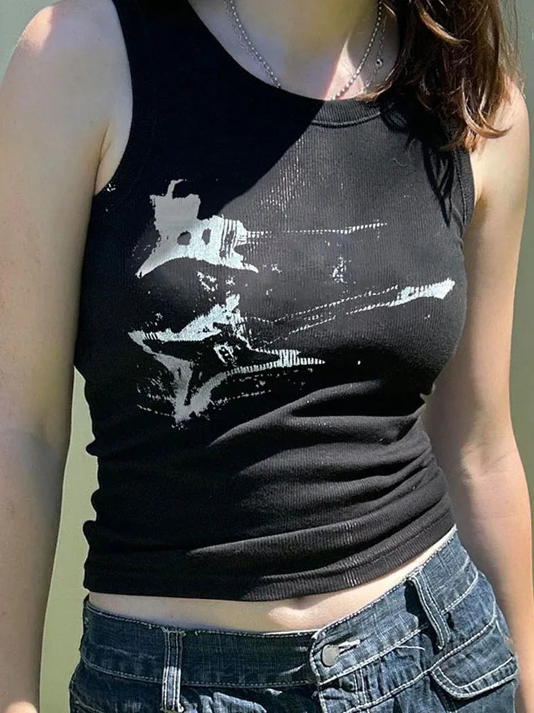 Lunivop Guitar Print Sleeveless Tank Top Y2K Casual Ribbed Women Grunge Crop Top Harajuku Fashion Vest Tee 90s Street Outfits