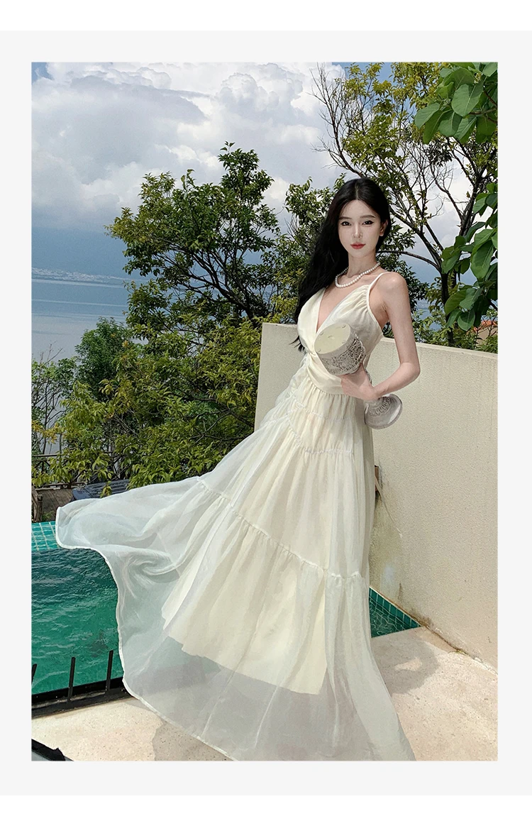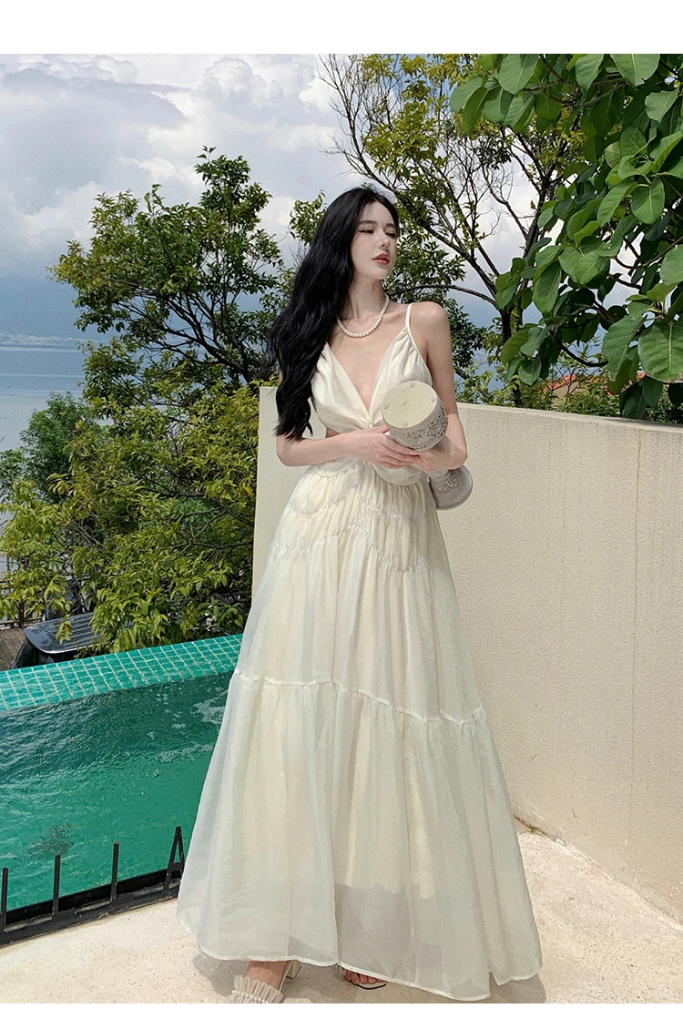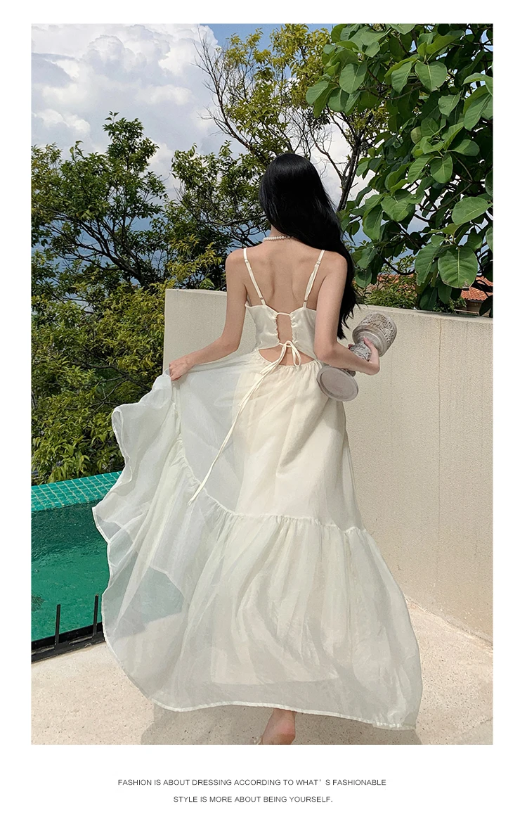 Halter Holiday Style Sling Dress for Women 2024 Sleeveless Solid Vacation Summer Prom French Sexy Ladies Simple Midi Clothes New
