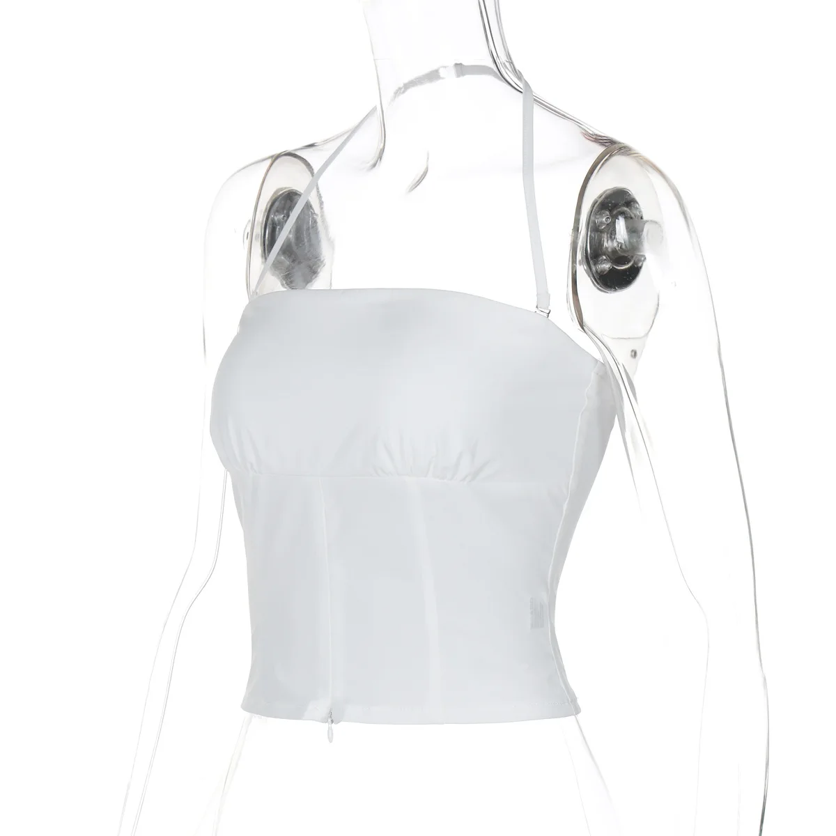 Lunivop Halter Strapless Zipper Bodycon Solid Corset Camis Tops Y2K Streetwear Korean Casual Clothes Ladies Manufacturer