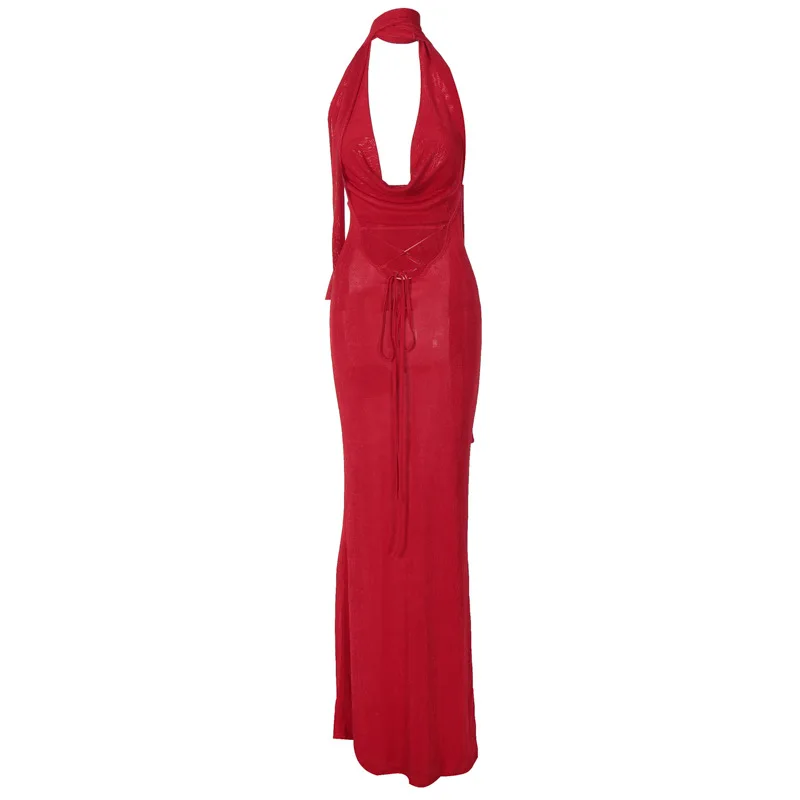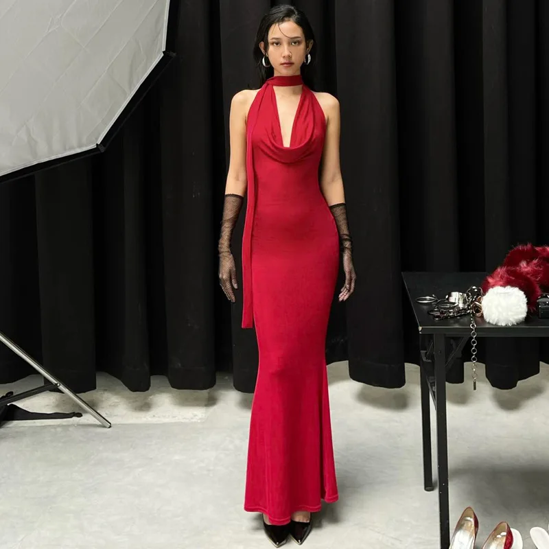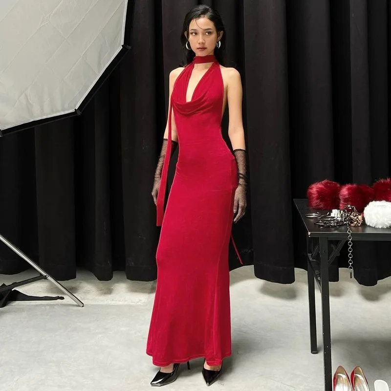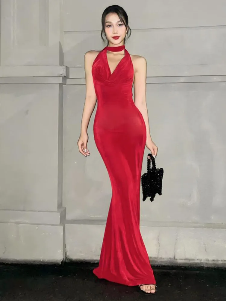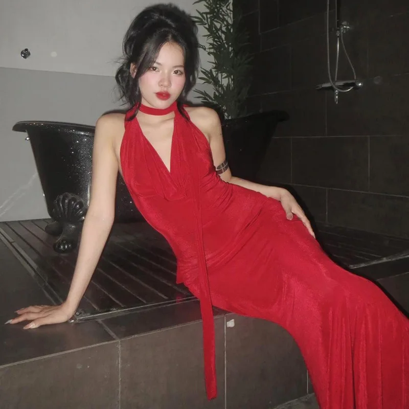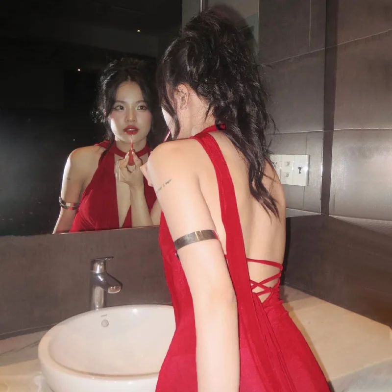 Lunivop Halter V Neck Backless Elegant Evening Party Women'S Dresses Y2K Korean Wholesale Casual Clothes Summer 2024 Ladies Dress