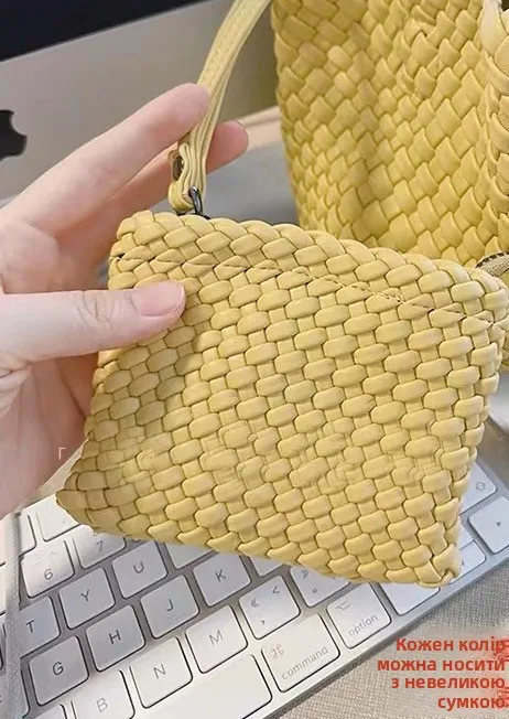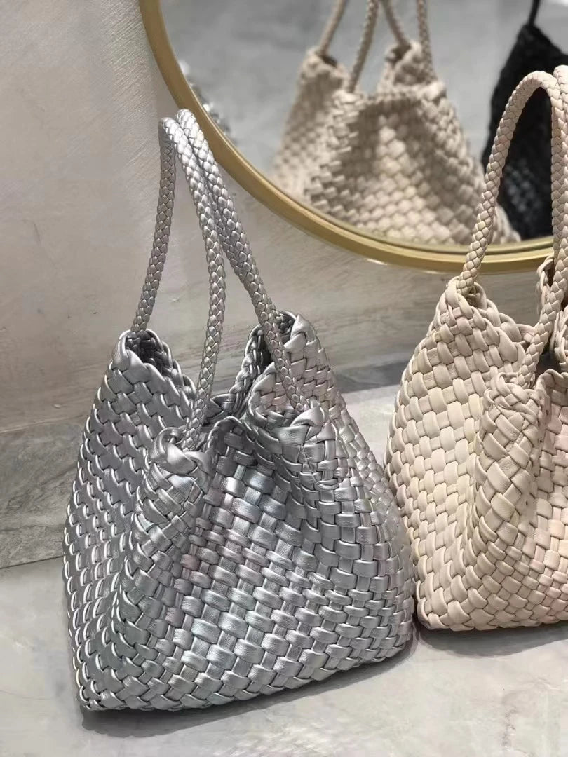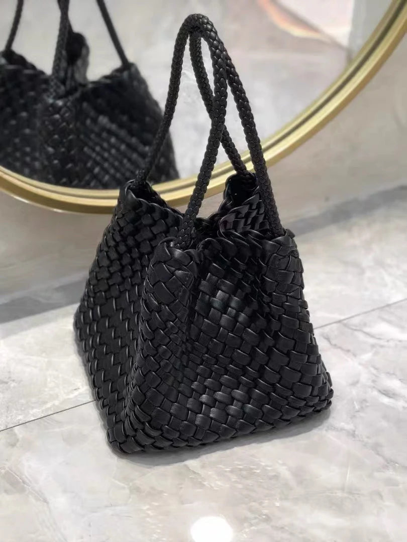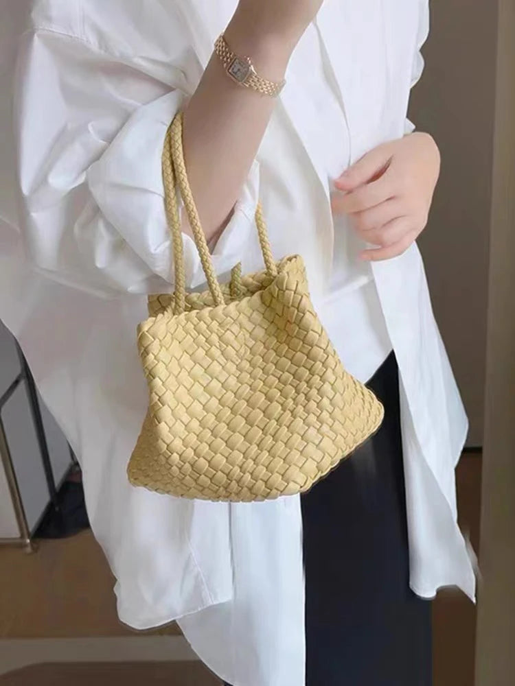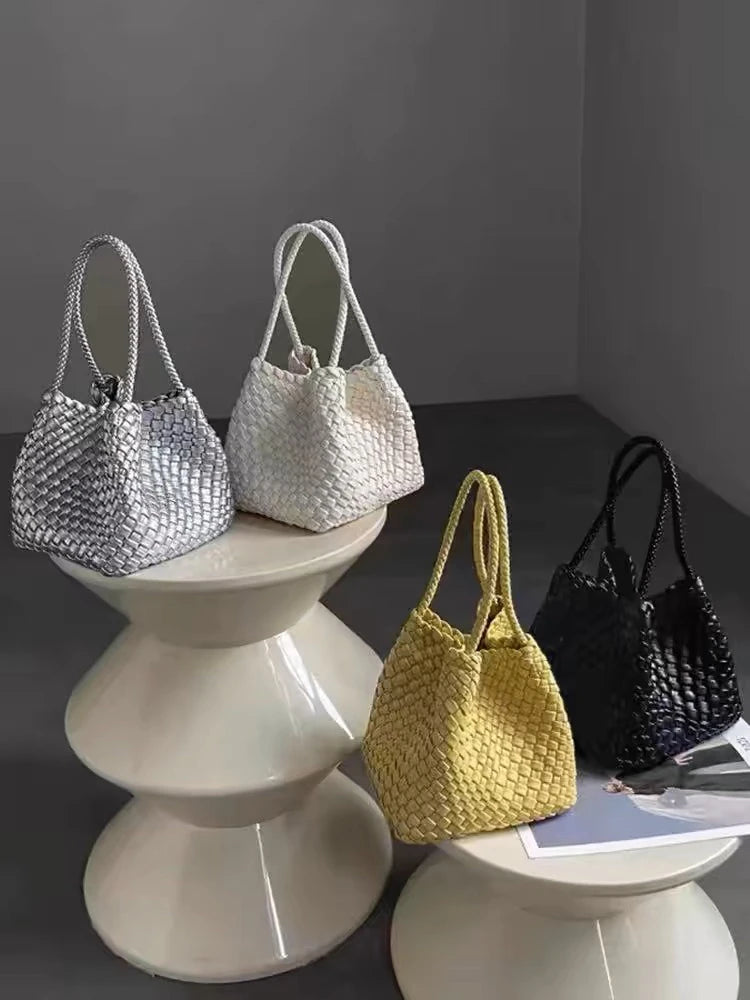 Lunivop Handwoven Basket Sle Mother Daughter Handbag Casual Faion PU Leather Soft Buet Bag with Magnetic Bule Closure