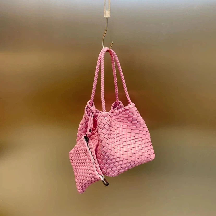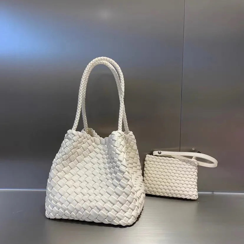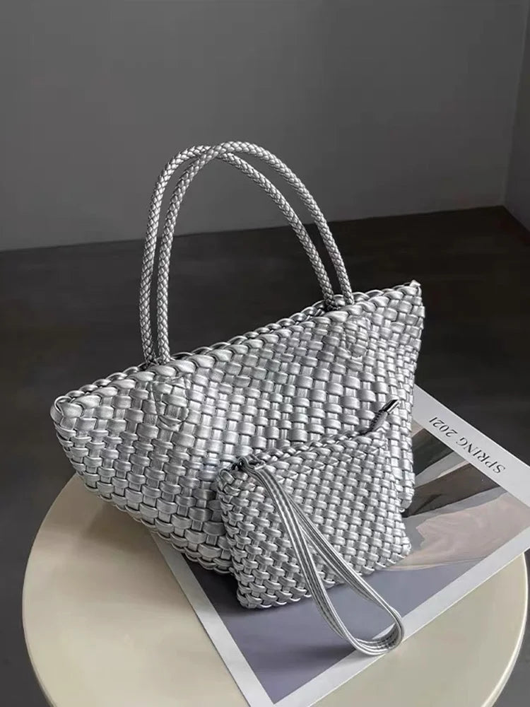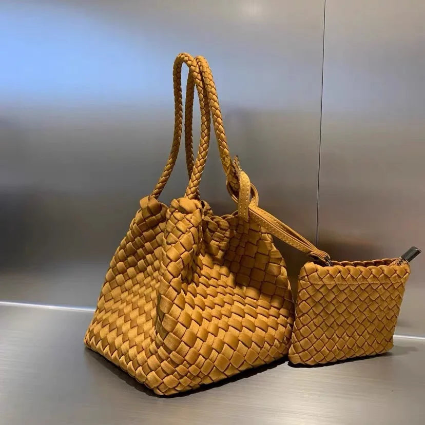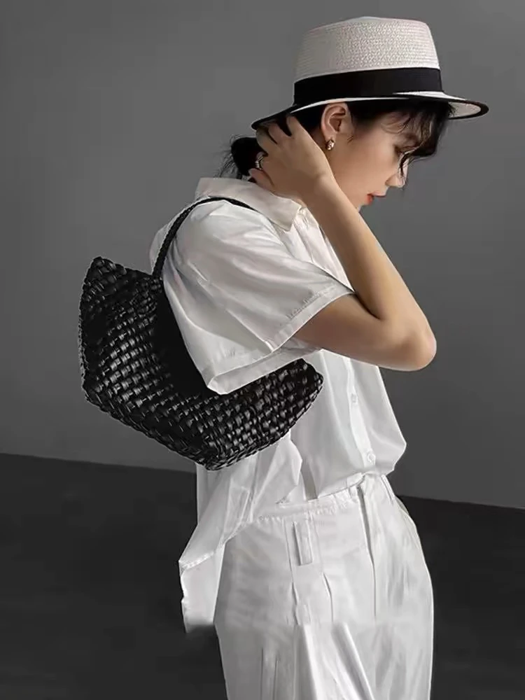 Lunivop Handwoven Basket Sle Mother Daughter Handbag Casual Faion PU Leather Soft Buet Bag with Magnetic Bule Closure