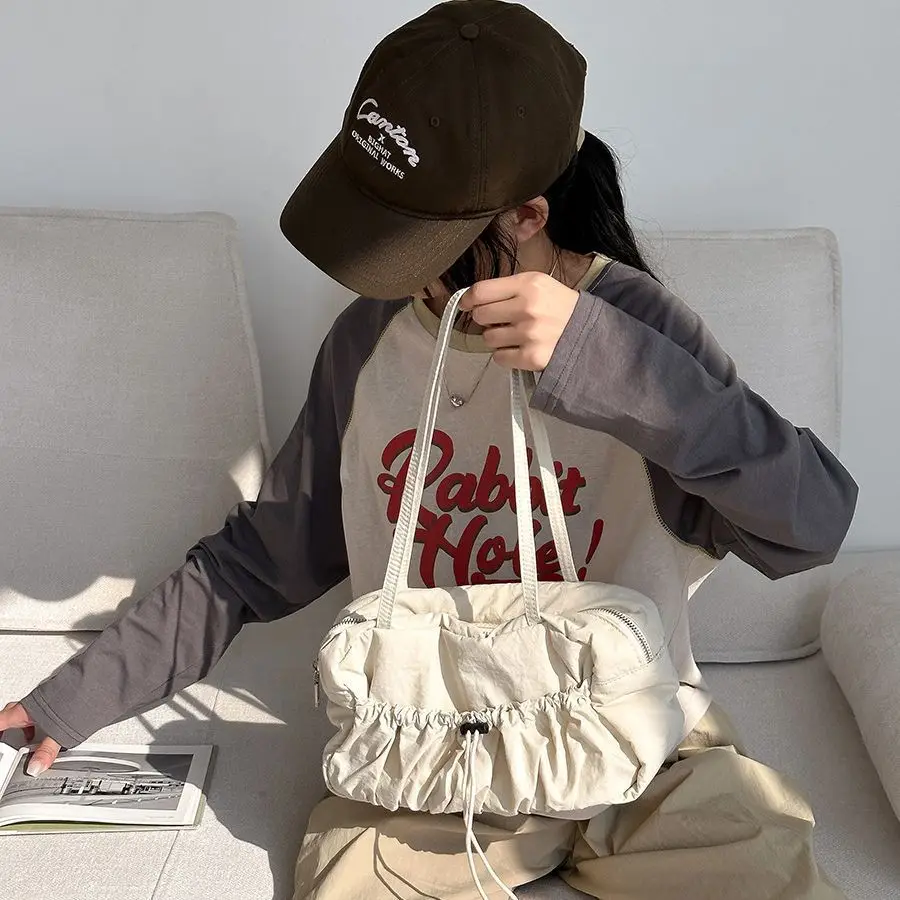 Lunivop Harajuku Beige Shoulder Bags Women Retro Nylon Pocket Chic Casual Handbag Female Vintage Portable Underarm Bag Purse