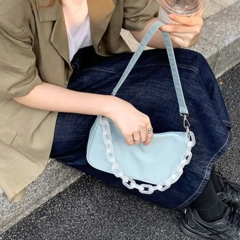 Lunivop Harajuku Blue Underarm Bag Purse Women Hot Girls Nylon Chic Casual Shoulder Bags Female Retro Summer Y2k Handbag New