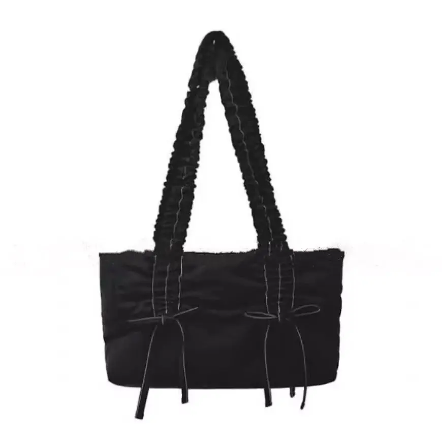 Lunivop Harajuku Grey Tote Bag Women Retro Bow Chic Large Capacity Casual Handbag Purse Female Vintage Underarm Messenger Bag
