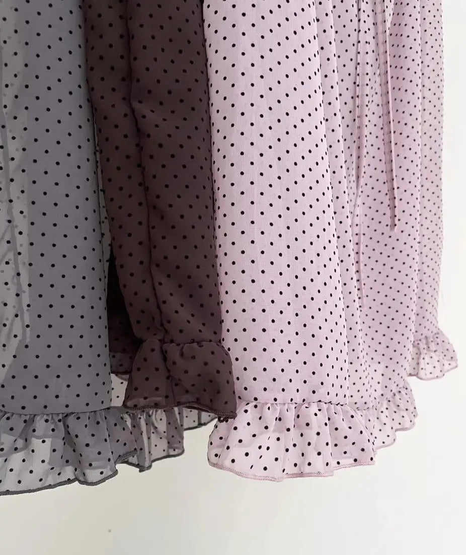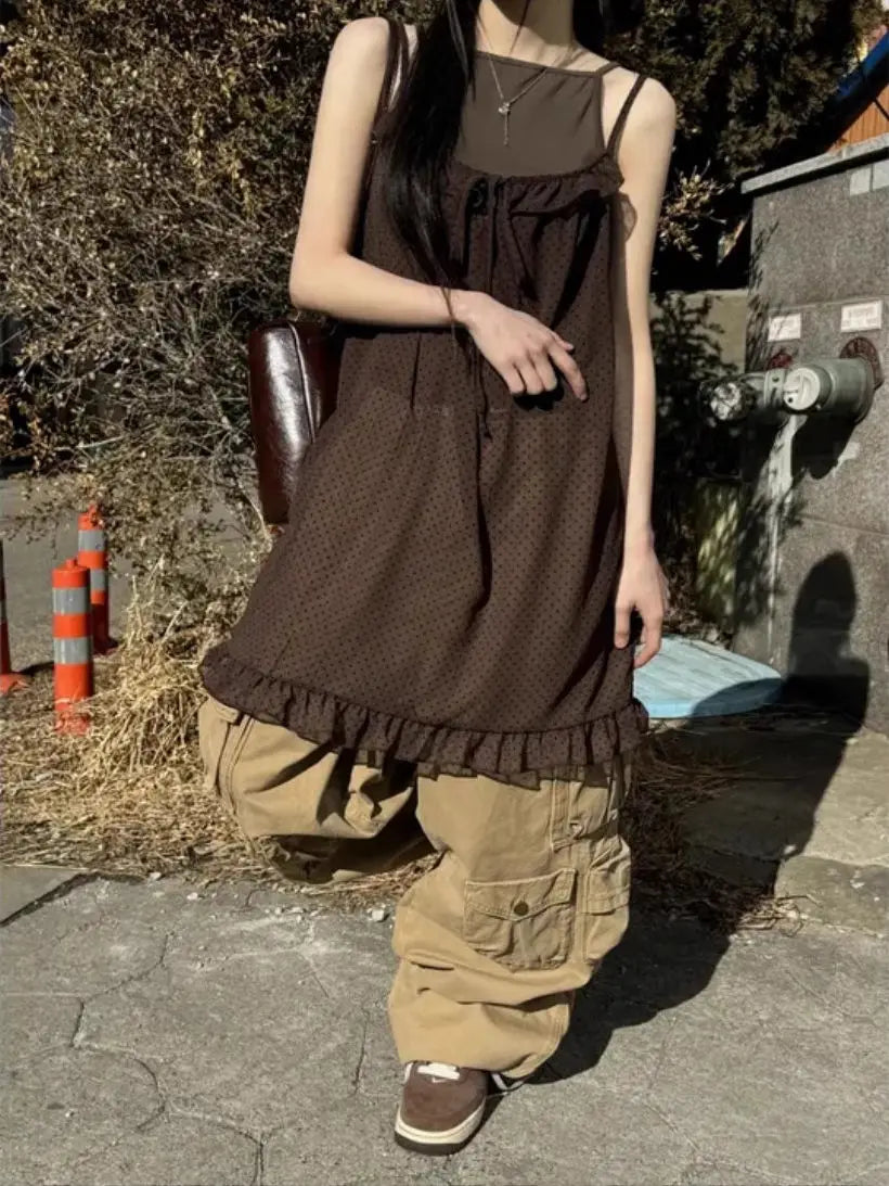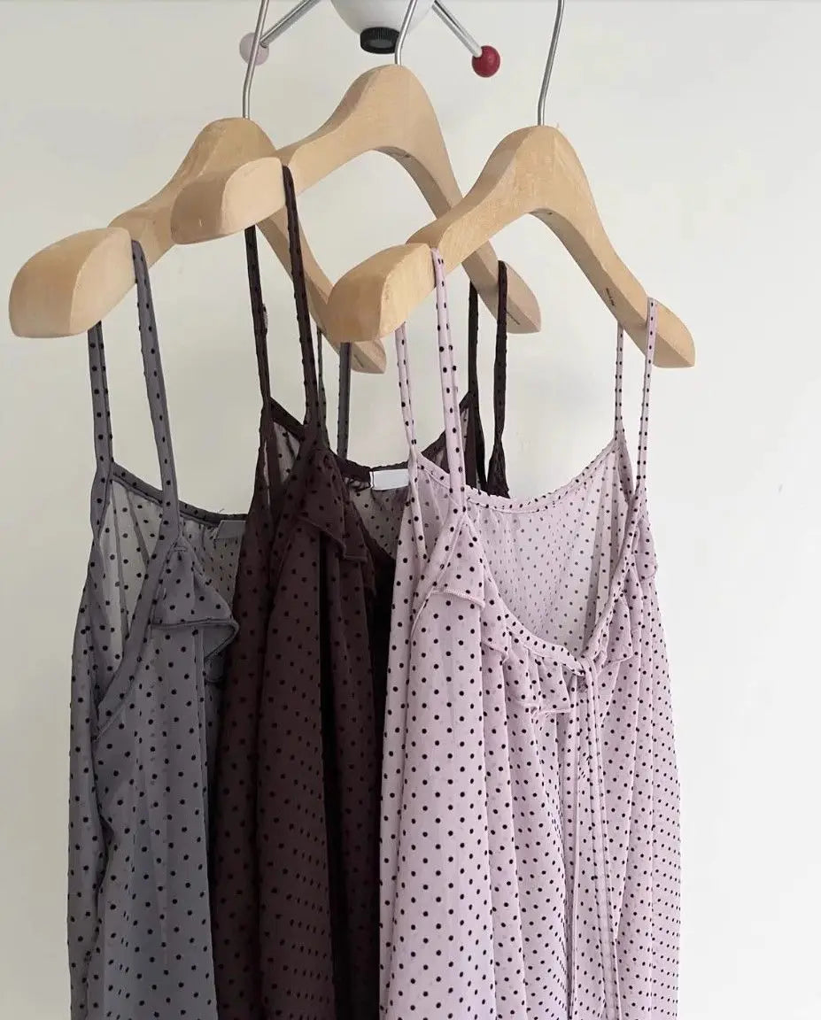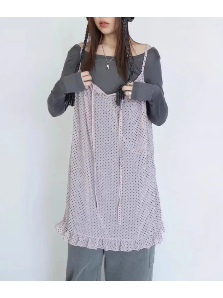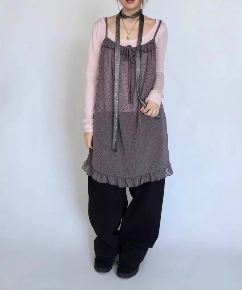 Lunivop Harajuku Japanese Style Tank Tops Women Vintage Polka Dot Ruffle Sleeveless Mesh Dress Sexy See-through Layered Wear