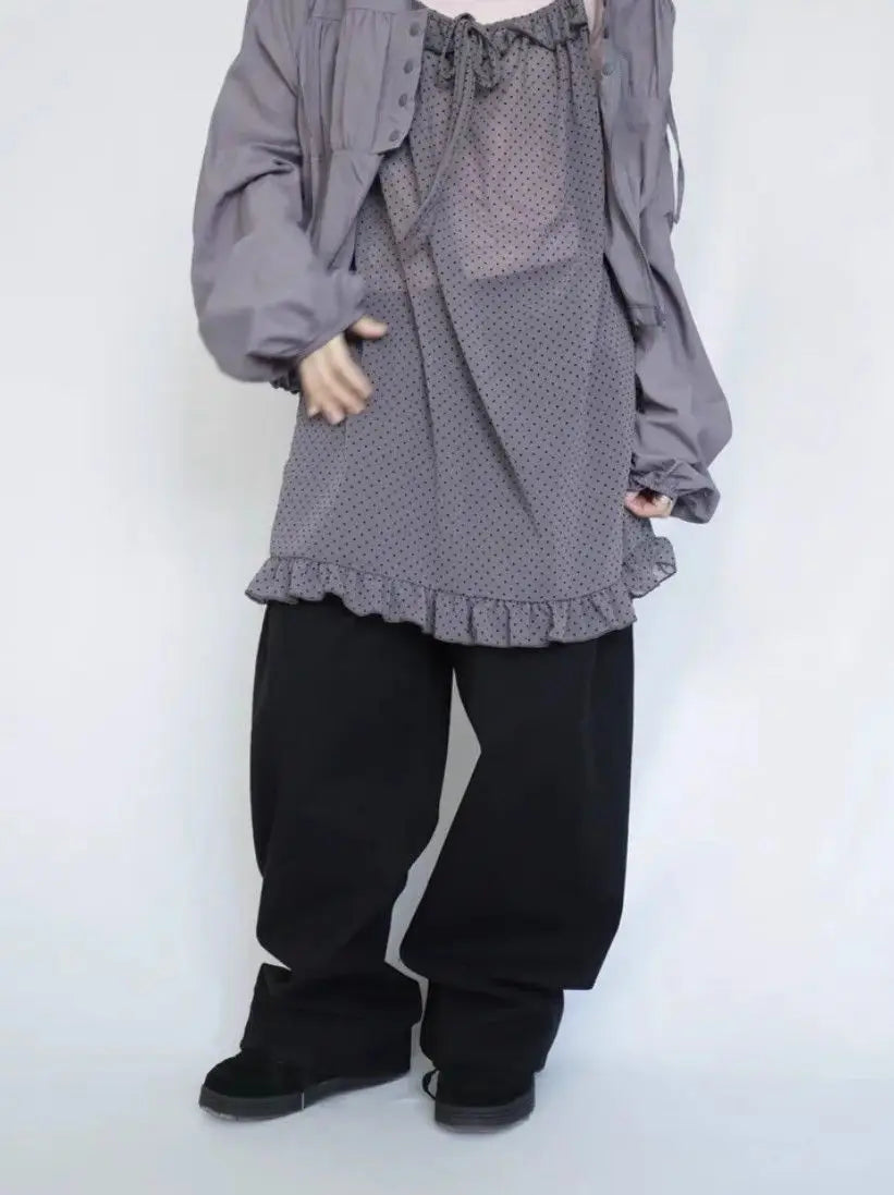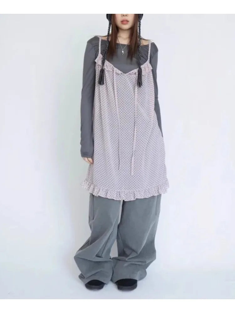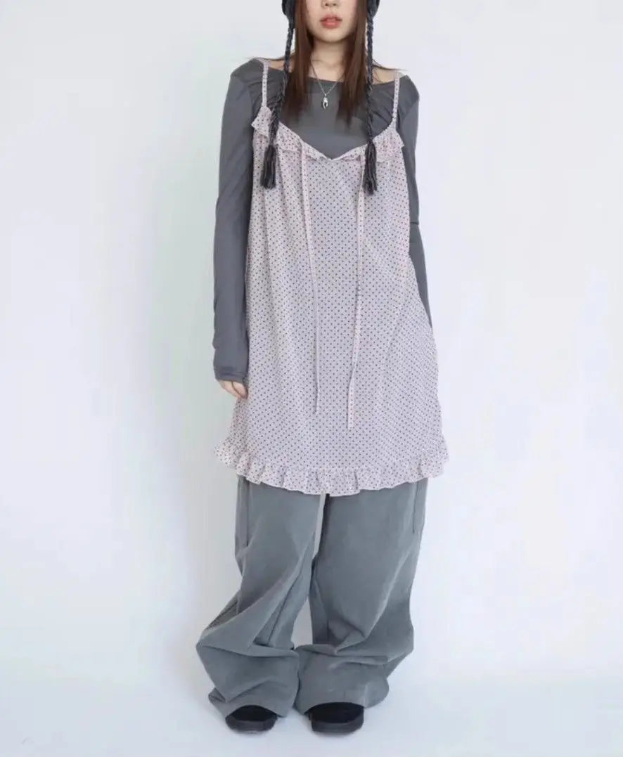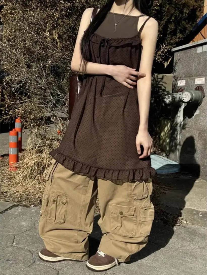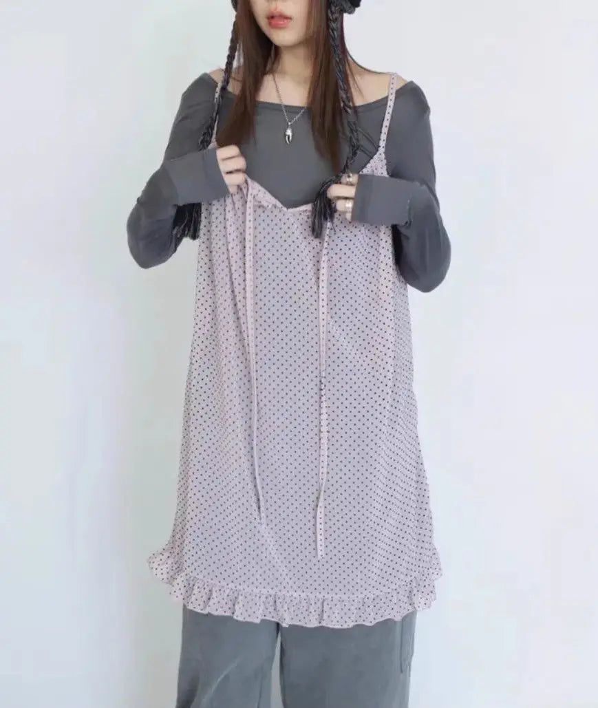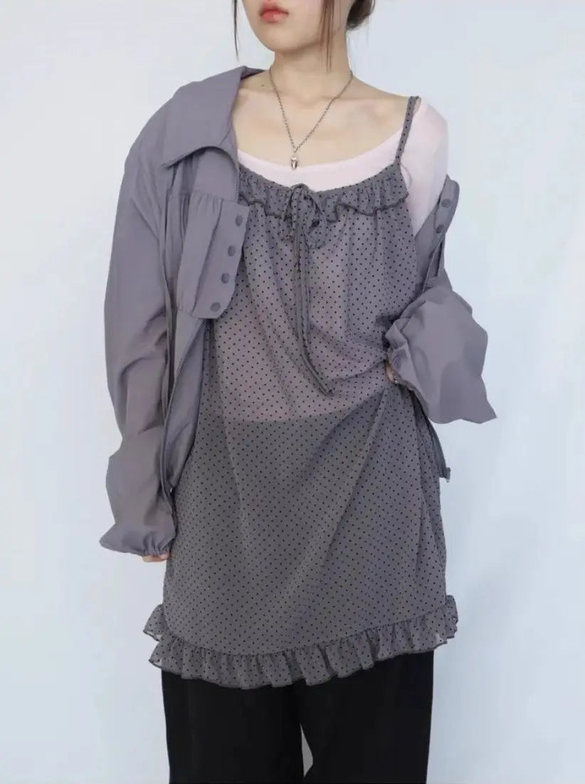 Lunivop Harajuku Japanese Style Tank Tops Women Vintage Polka Dot Ruffle Sleeveless Mesh Dress Sexy See-through Layered Wear