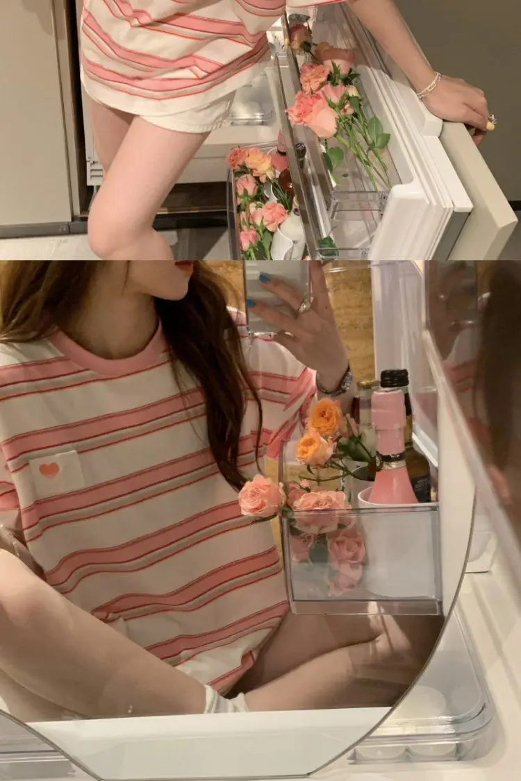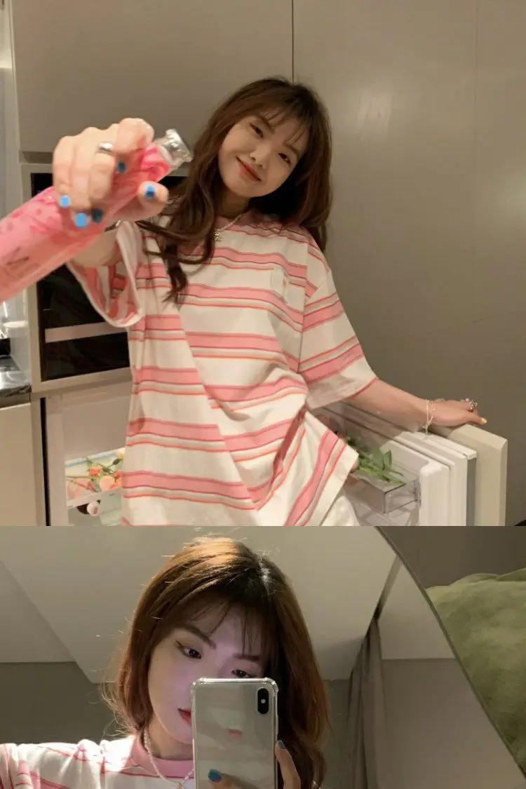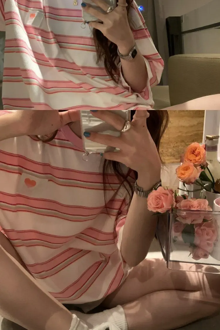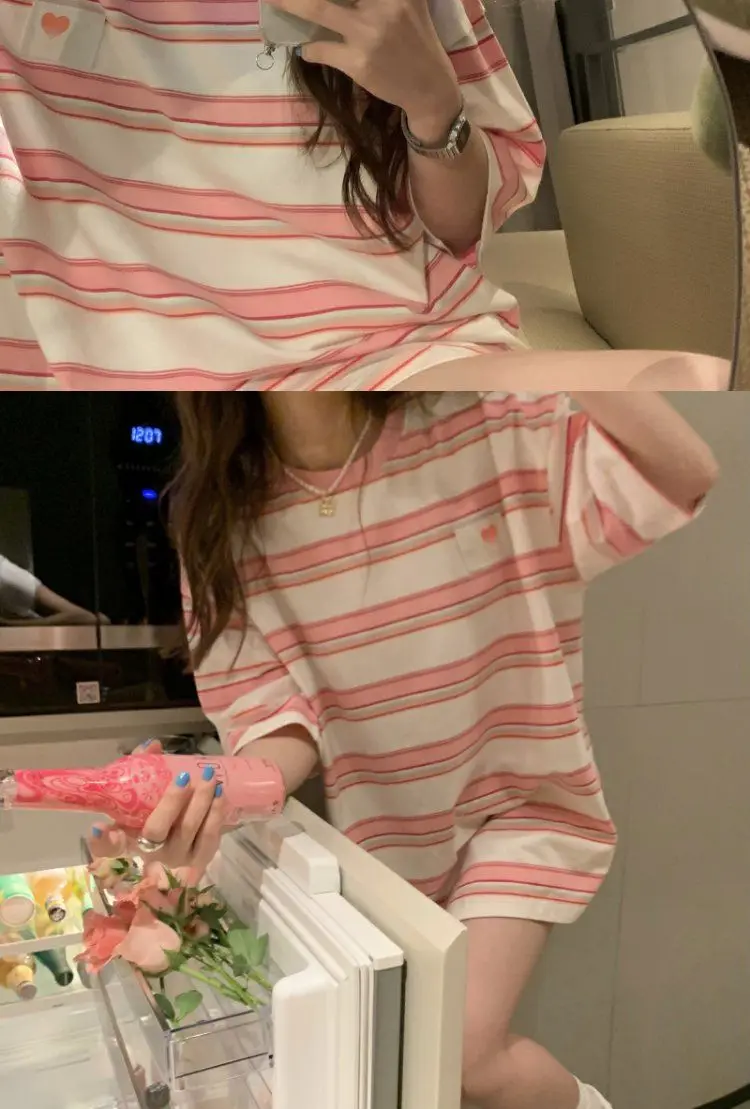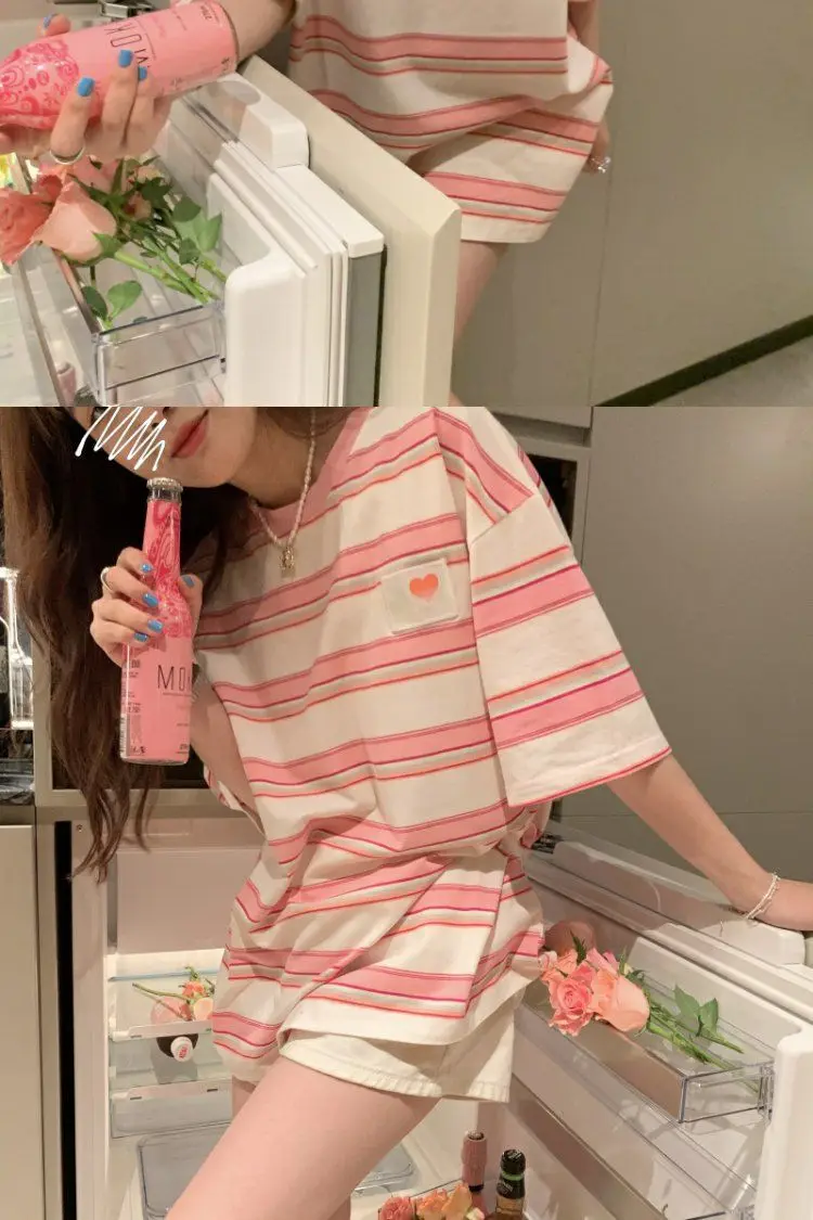 Lunivop Harajuku Kawaii Pink Striped T-shirt Short Sleeve T Shirt for Women's Cute Tshirt Streetwear Tops Tee Teenage Girl Clothing