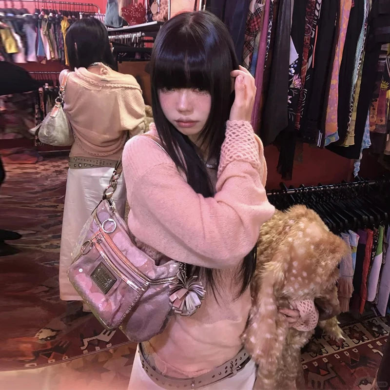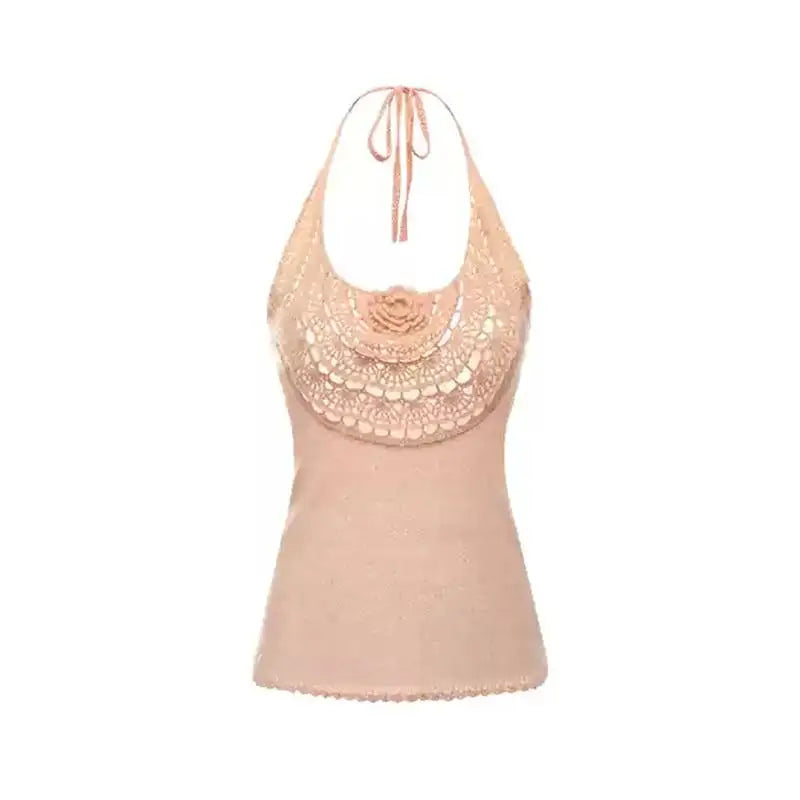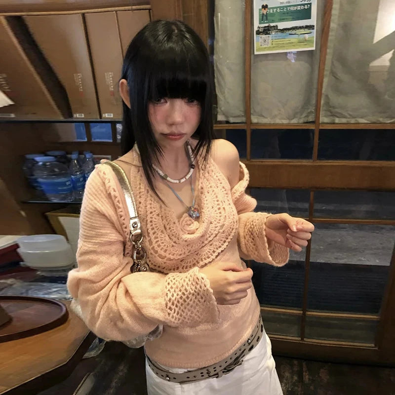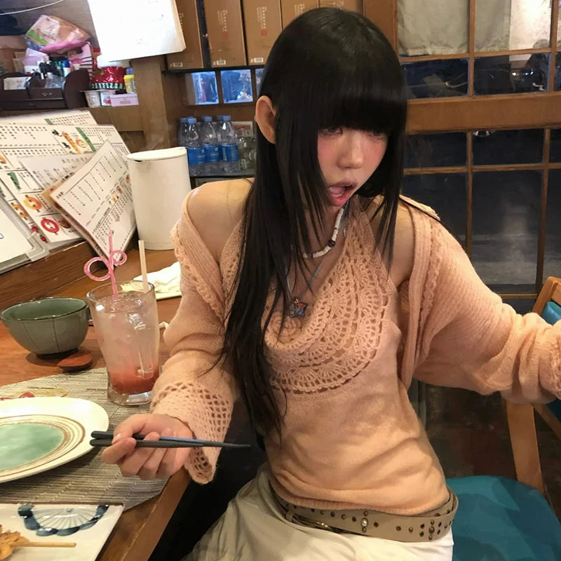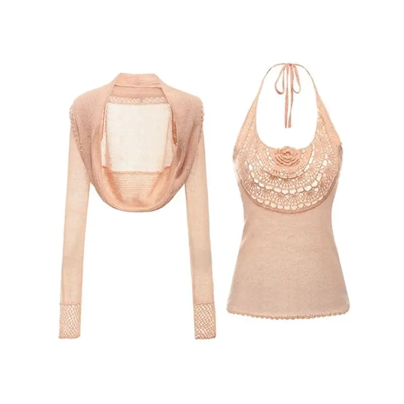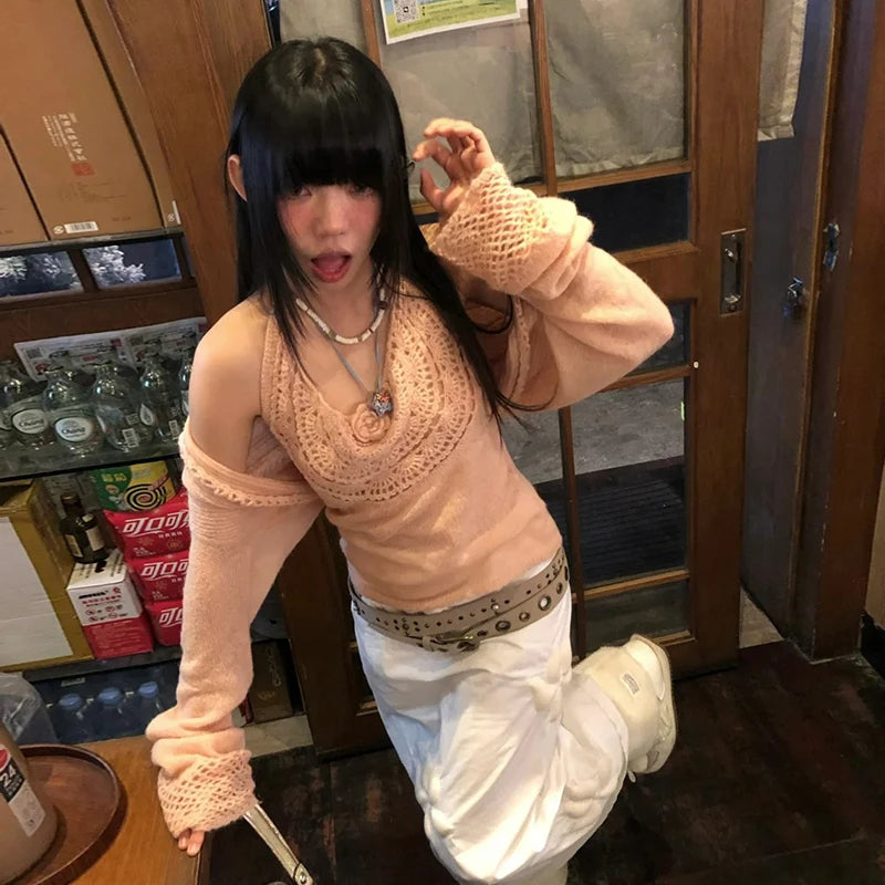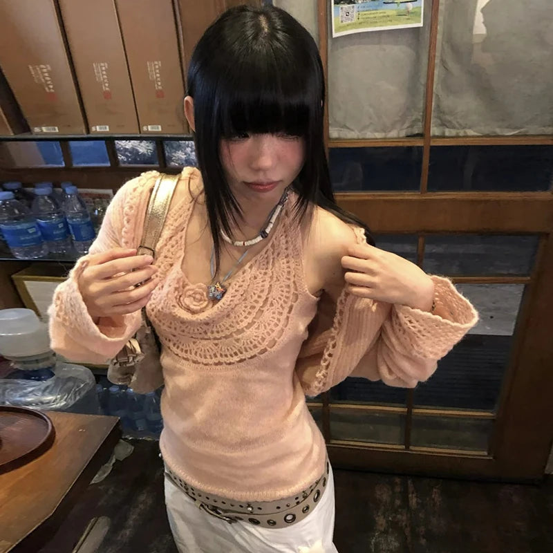 Lunivop Harajuku Knitted Two Pieces Tops Hollow Out Floral Tank Tops +smock Y2k Fairycore T Shirts Women 2000s Japanese Tee Top
