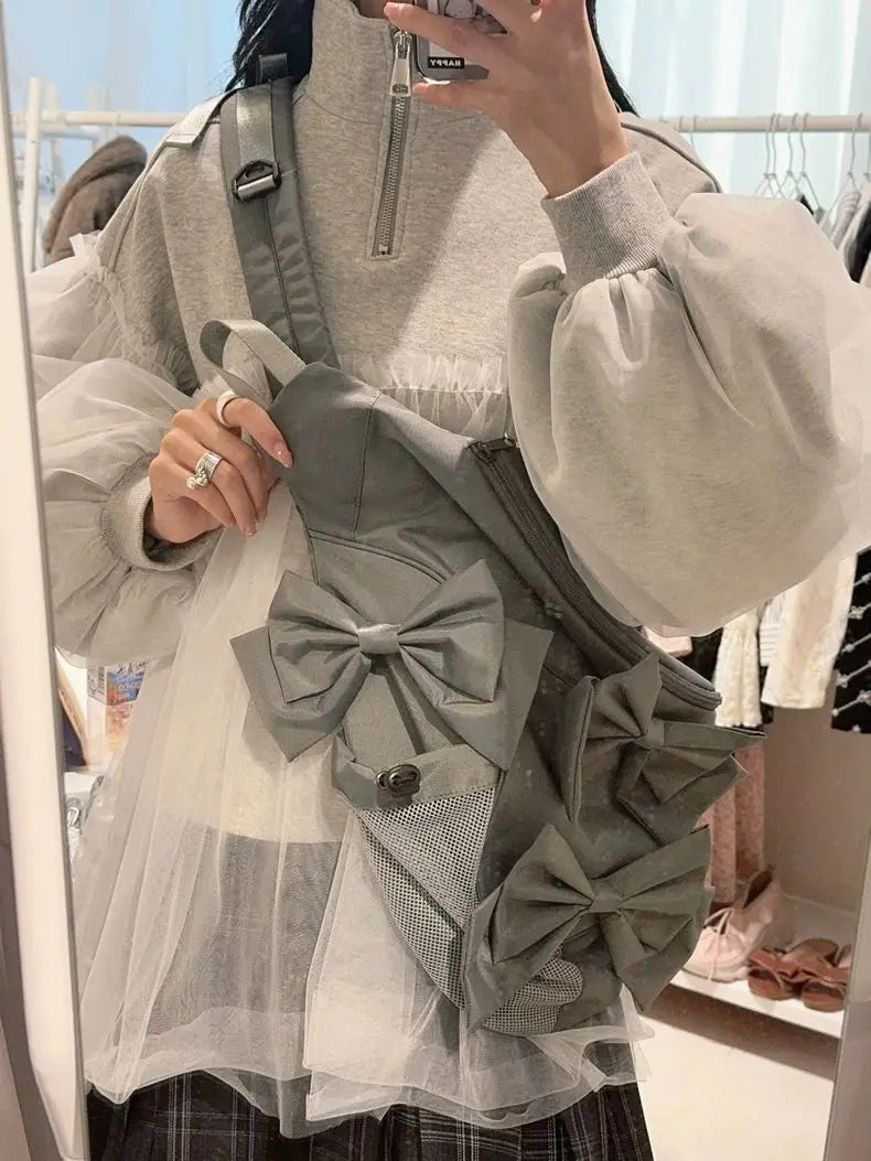 Lunivop Harajuku Nylon Bow Crossbody Bags Women High Street Large Capacity Y2k Handbag Ladies Retro Hot Girls Chest Bag