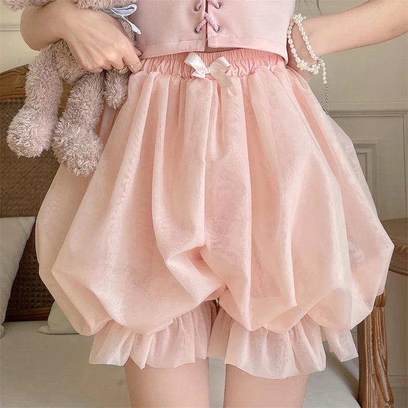 Lunivop Harajuku Sweet Lolita Pumpkin Pants New Pink Thin Bottoming Shorts for Women Summer High Waist Bow Jk Short Pants