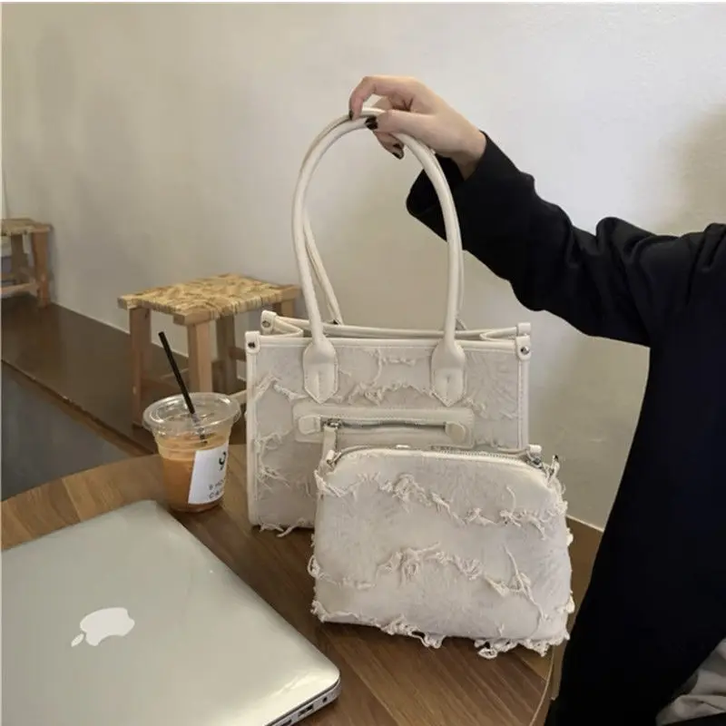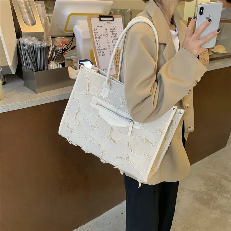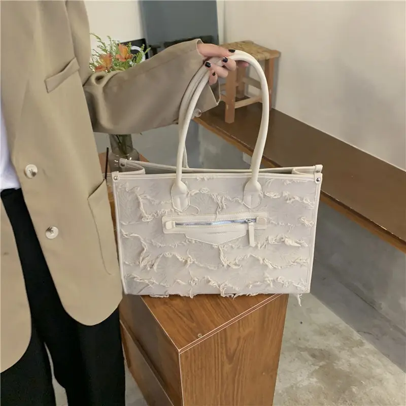 Lunivop Harajuku White Large Capacity Tote Bag Women Retro Elegant Pearl Tassel Casual Shoulder Bag Female Elegant Handbag Purse
