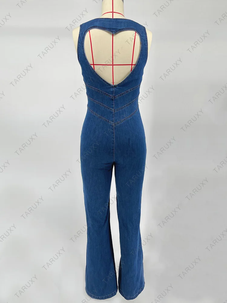 Lunivop Heart Hollow Sleeveless Denim Jumpsuit Women Summer Backless Bodycon Overalls For Woman Slim Sexy Monos Mujer Elegante