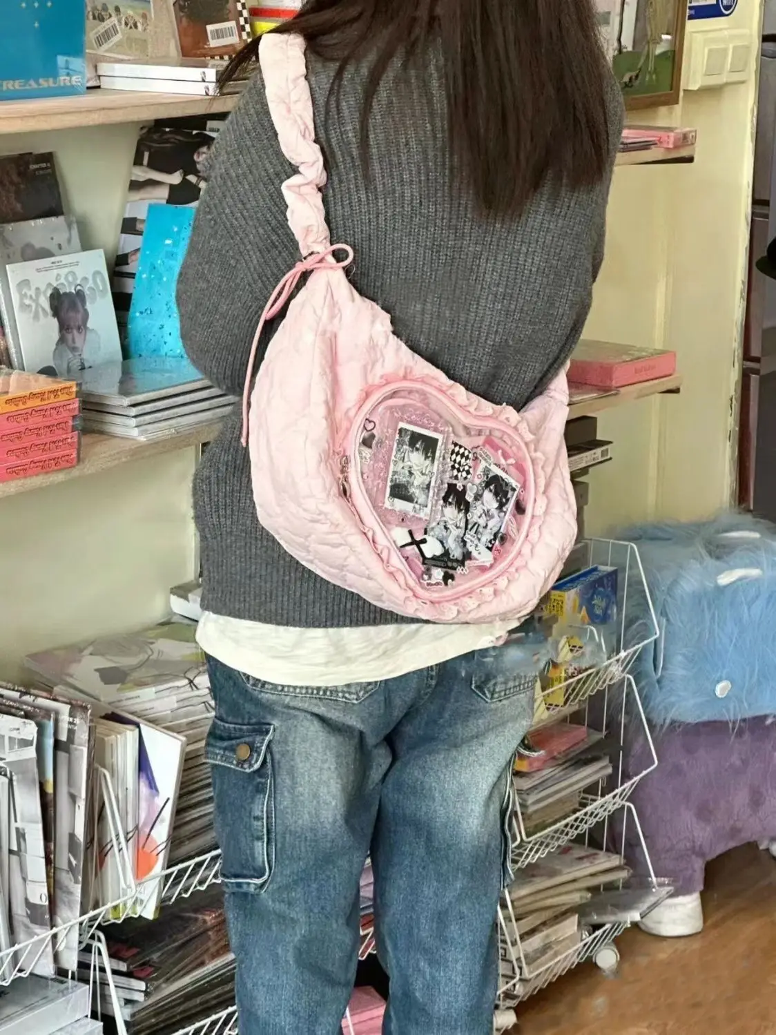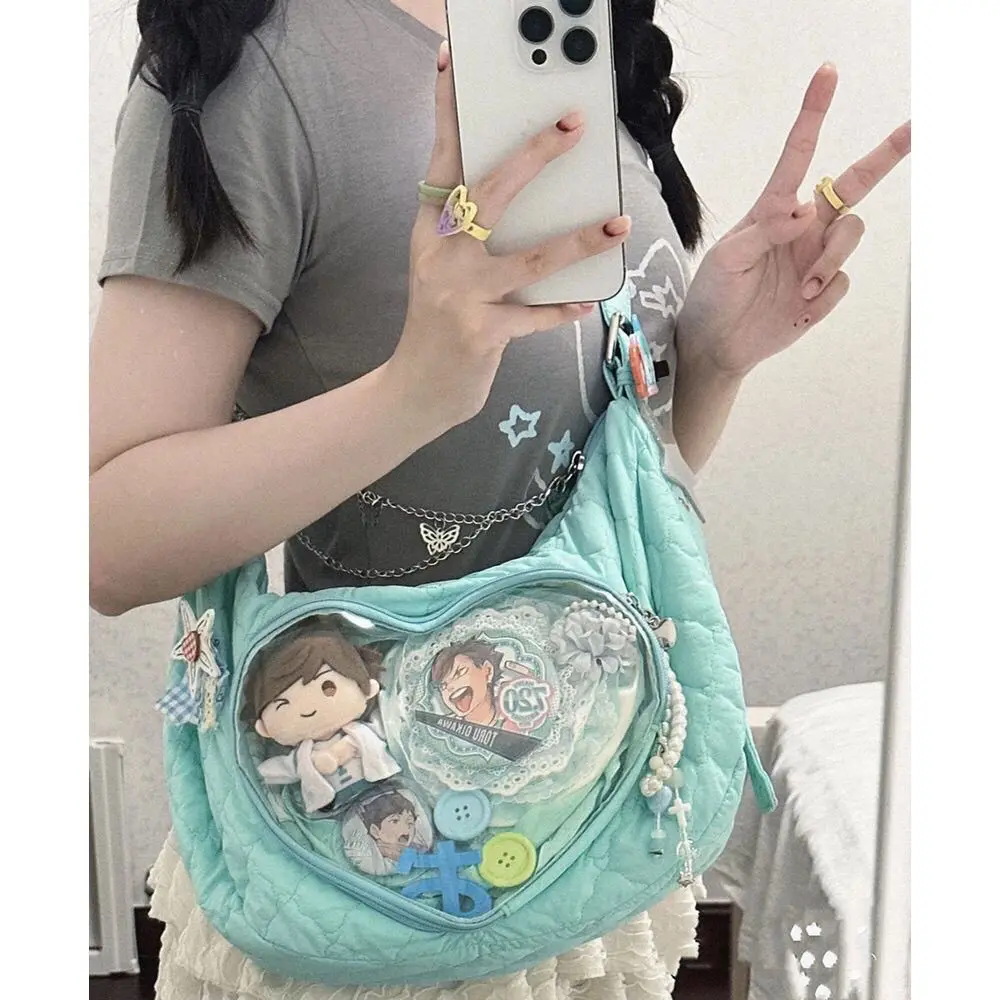 Lunivop Heart Transparent Ita Bags Handbag Women Japanese Lace Soft Casual Crossbody Bags Female Sweet Cute Messenger Bag Y2k