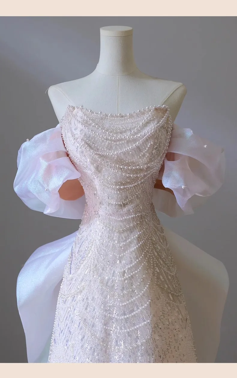Lunivop Heavy shoulder temperament light luxury small fish tail welcome banquet dress