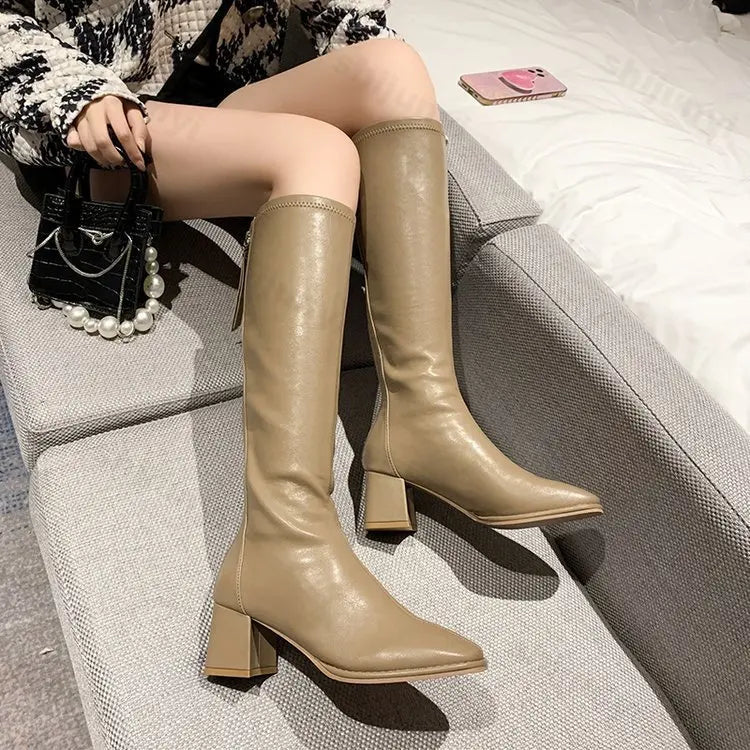 Lunivop High Boots Women British Style Elegant Slim Long Boots New Fashion Back Zipper Knight Knee High Boots Thick Heel Botas De Mujer