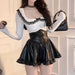 Lunivop High Waist Halter Mini Skirt Y2K Skirt Suit Lace Square Collar Long Sleeve Top Fashion Kawaii Sexy Outfits New Two-piece Set