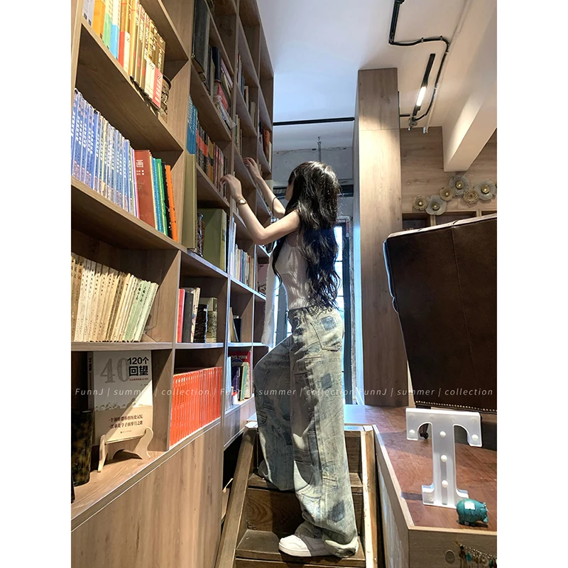 Lunivop High Waist Women Tie Dyeing Jeans Hip-hop Style Vintage Streetwear Y2K Wide Leg Jean Plus Size Female Trouser Baggy Denim Pants