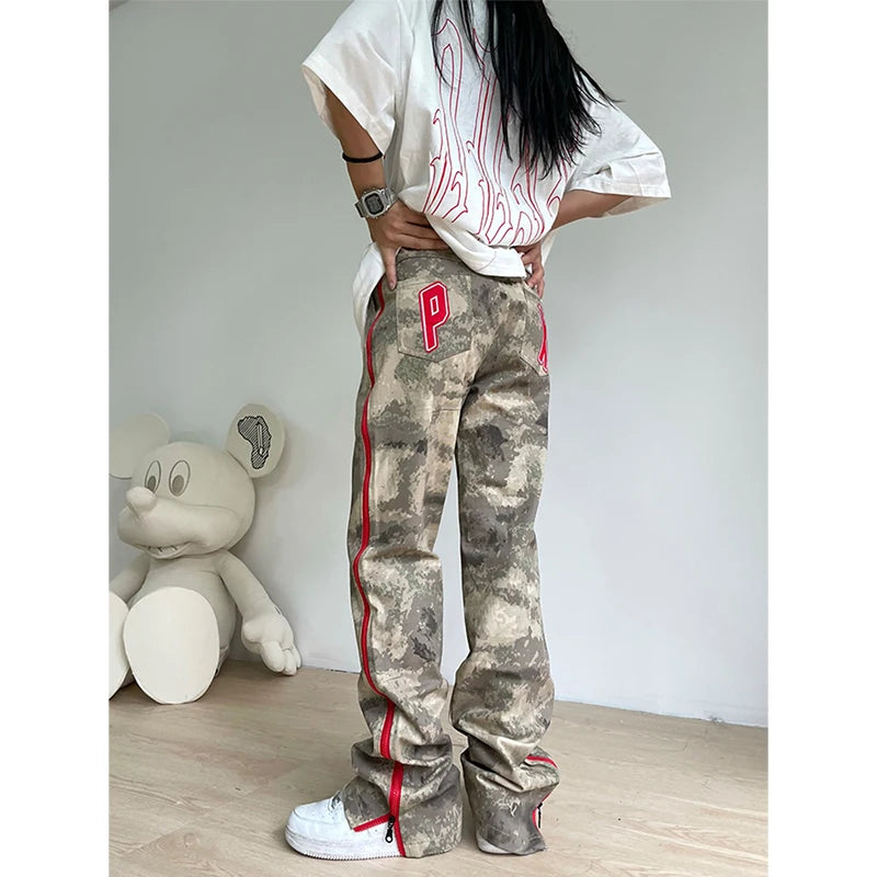 Lunivop Hip Hop Vintage Women Camouflage Jeans High Street Spring Autumn High Waist Pants Streetwear Fashion Loose Y2k Casual Trousers
