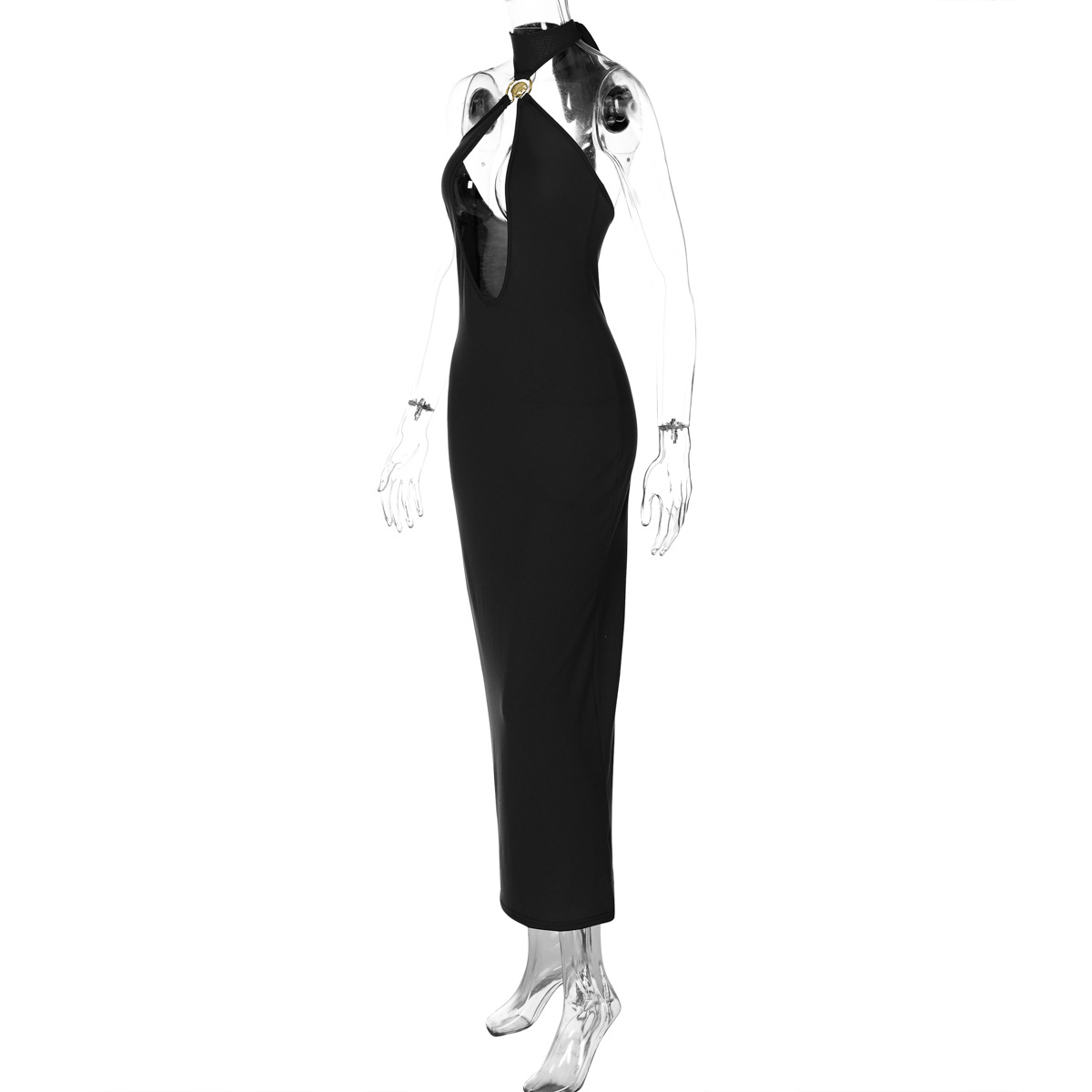 Lunivop Hollow Out Halter Backless Maxi Dresses For Women 2025 Sexy Party Dress White Black Red Night Club Outfits Summer