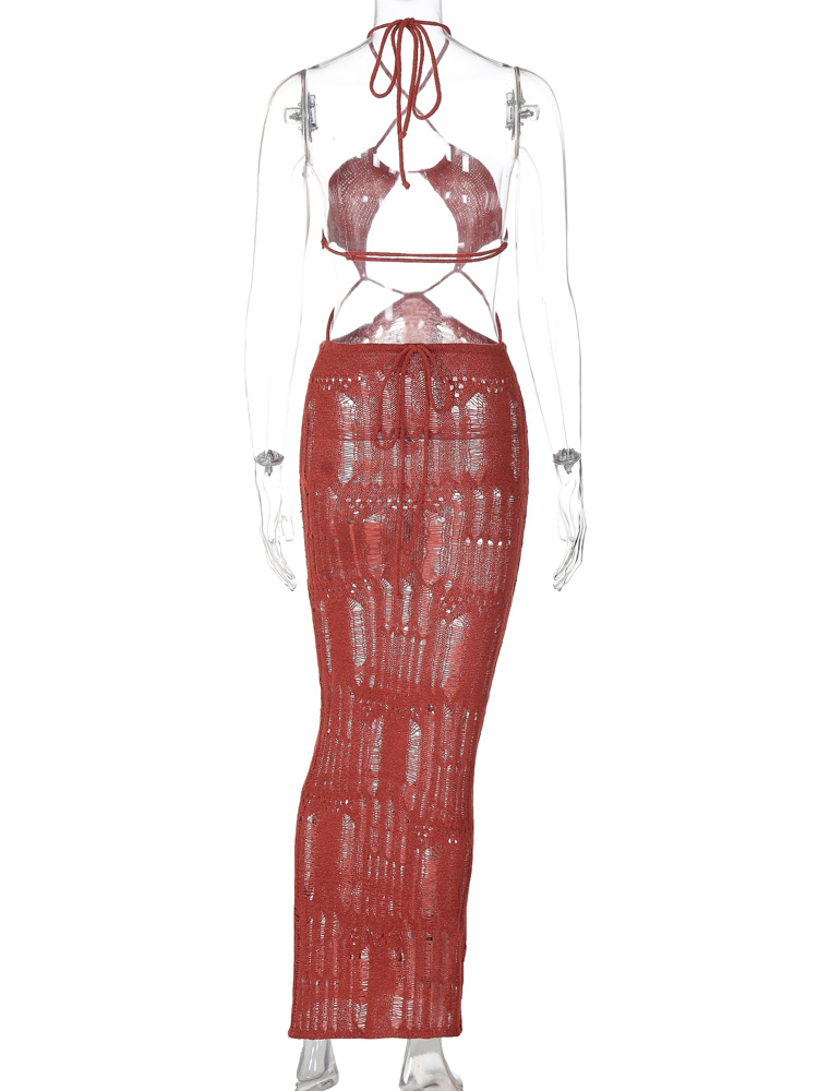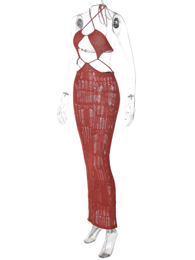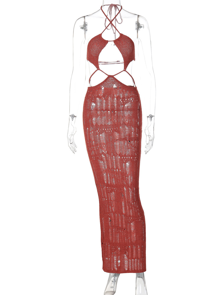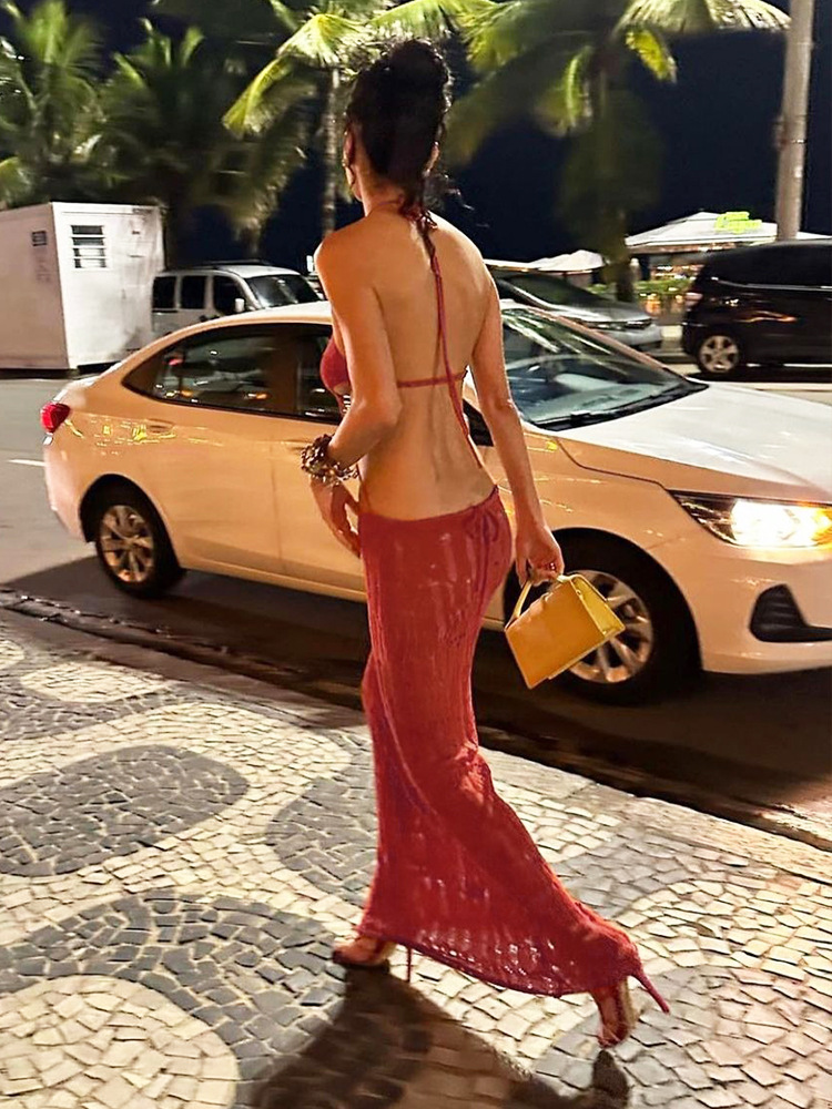 Lunivop Hollow Out Knit Halter Backless Maxi Dress Crochet Beach Vacation Dresses For Women Summer Women's Outfits