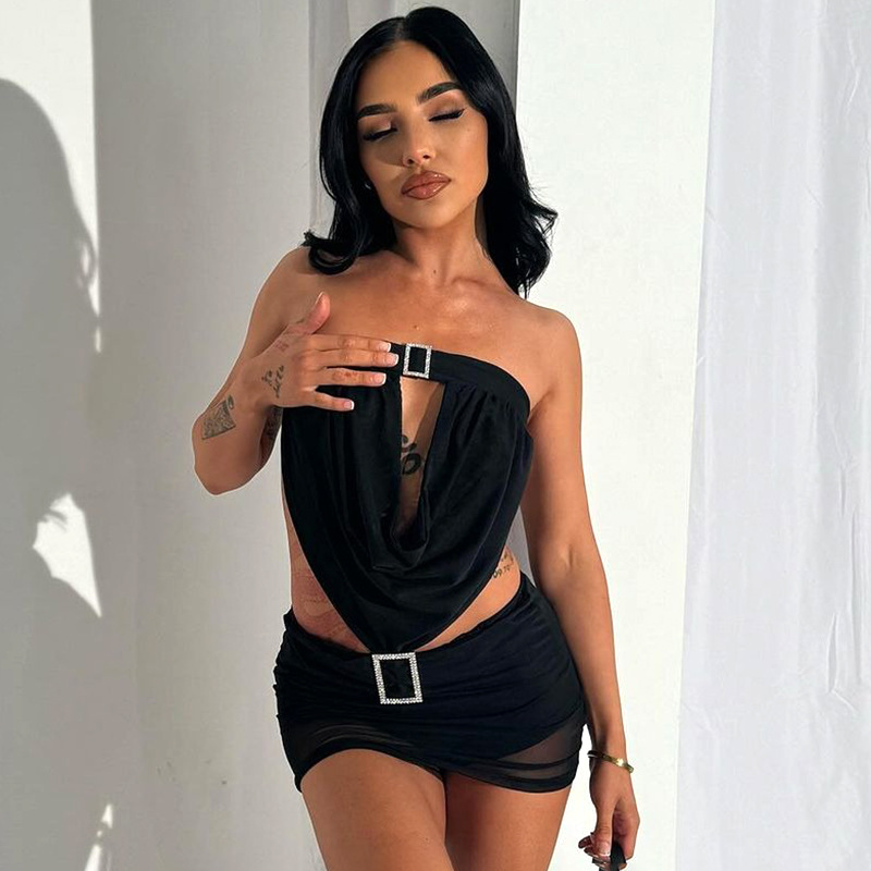 Lunivop Hollow Strapless Backless Mini Dress Sexy Black Mesh Club Dresses Womens Summer Fashion Y2K Clothing Trends 2024