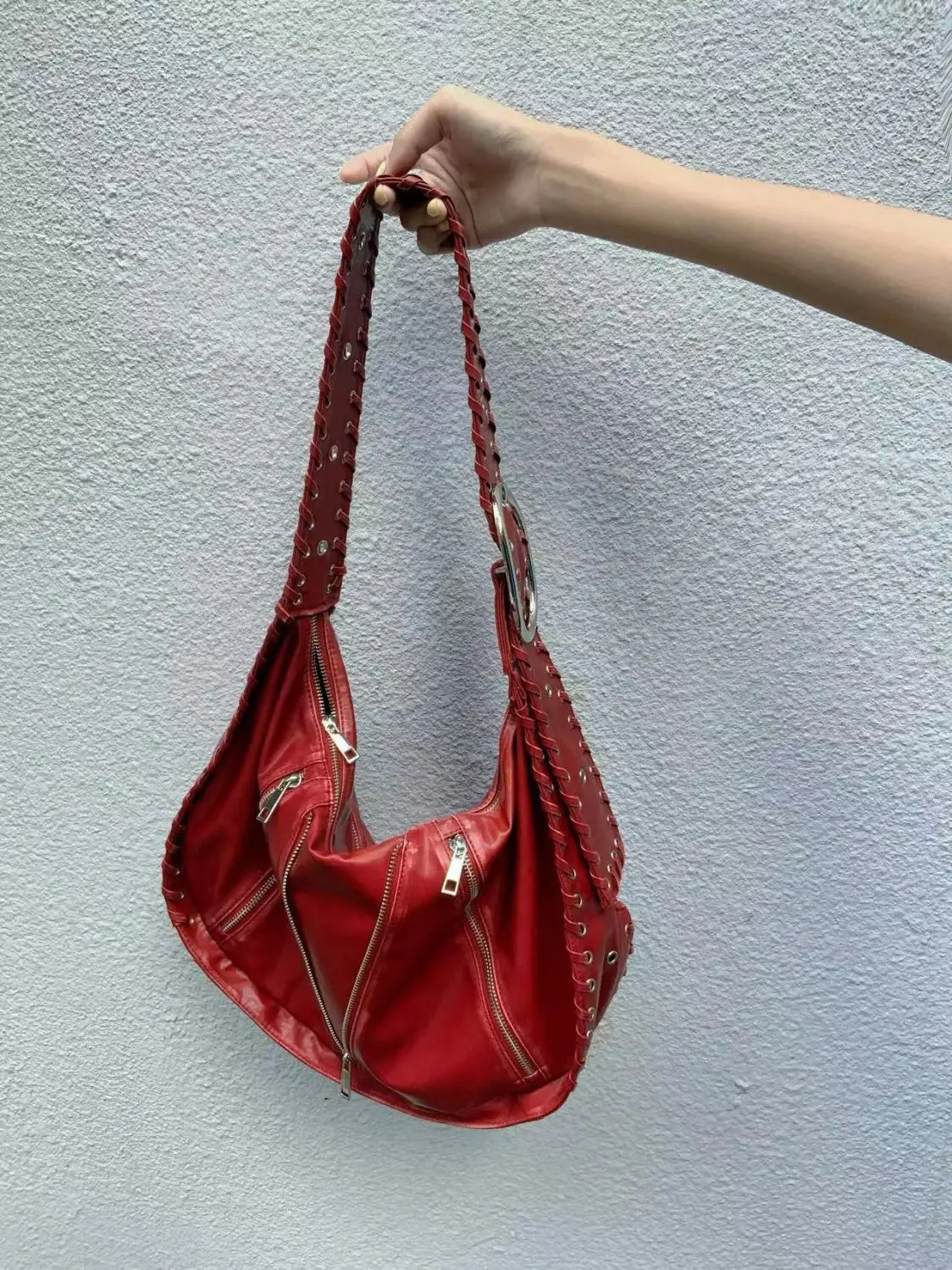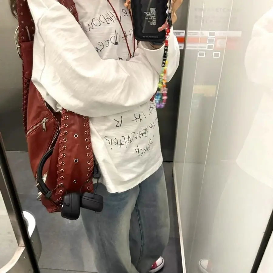 Lunivop Hot Girls Red Tote Bag Purse Women High Street Large Capacity Pu Leather Casual Y2k Handbag Ladies Retro Shoulder Bags