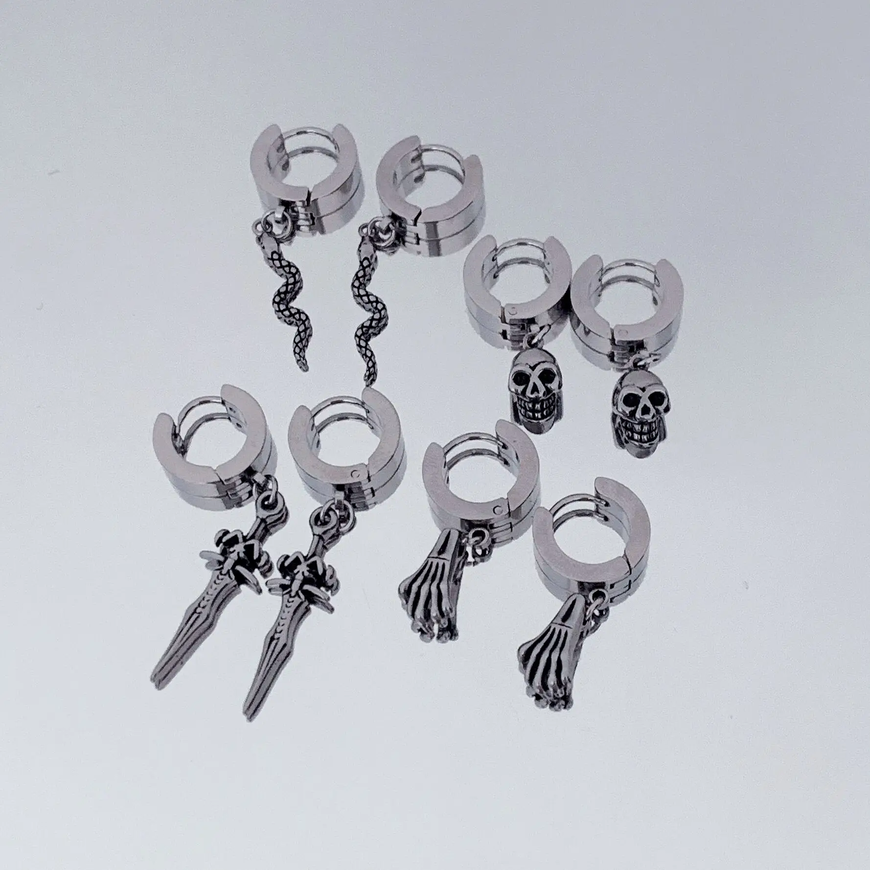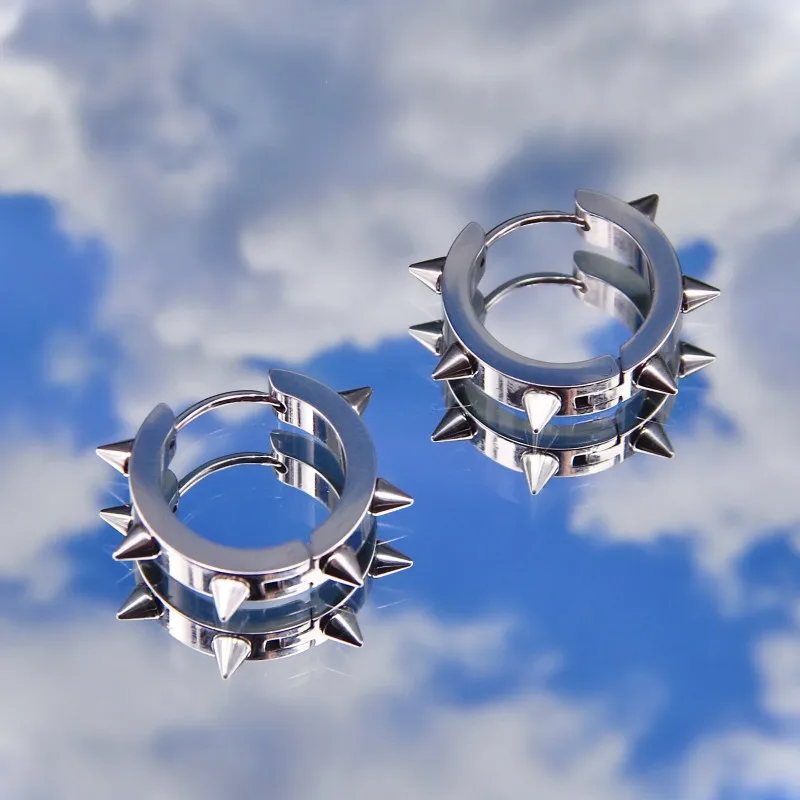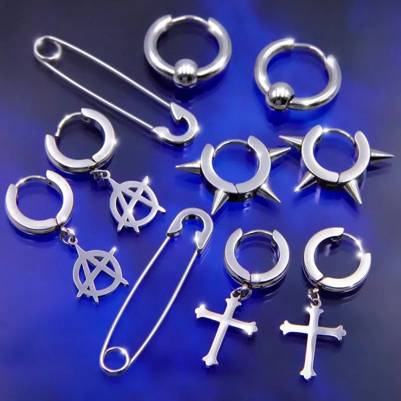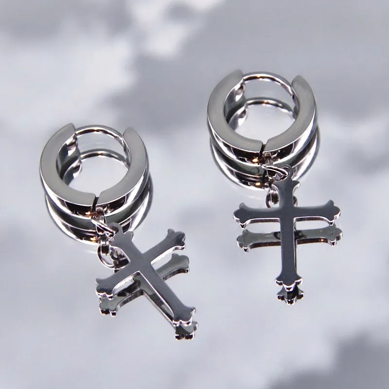 Lunivop INS Hiphop Punk Goth Cross Spike Dangle Hoop Earrings for Women Men Anti-allergic Titanium Stainless Steel Pin Cool Earrings