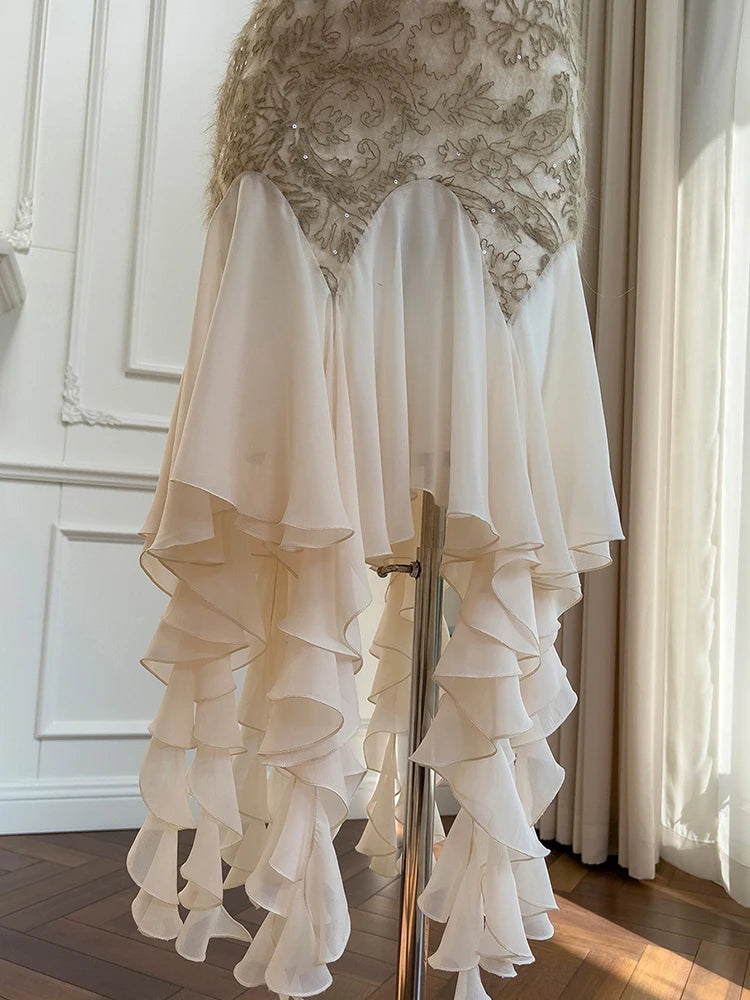 Lunivop Irregular Chiffon Ribbon Dresses For Women Round Neck Sleeveless High Waist Elegant Dress Female Spring 2025 New