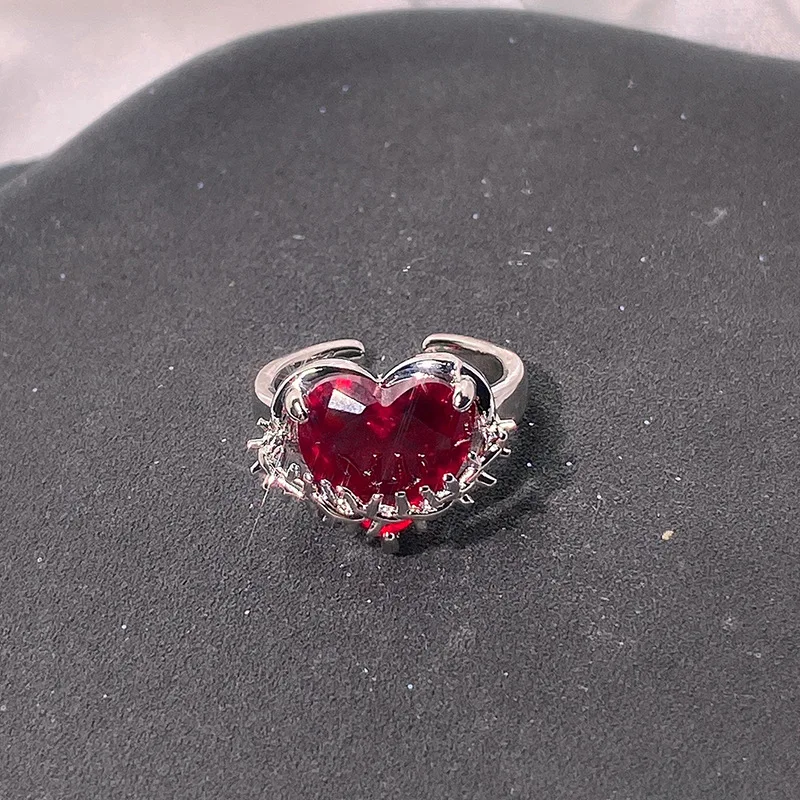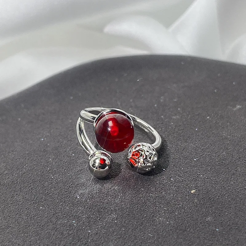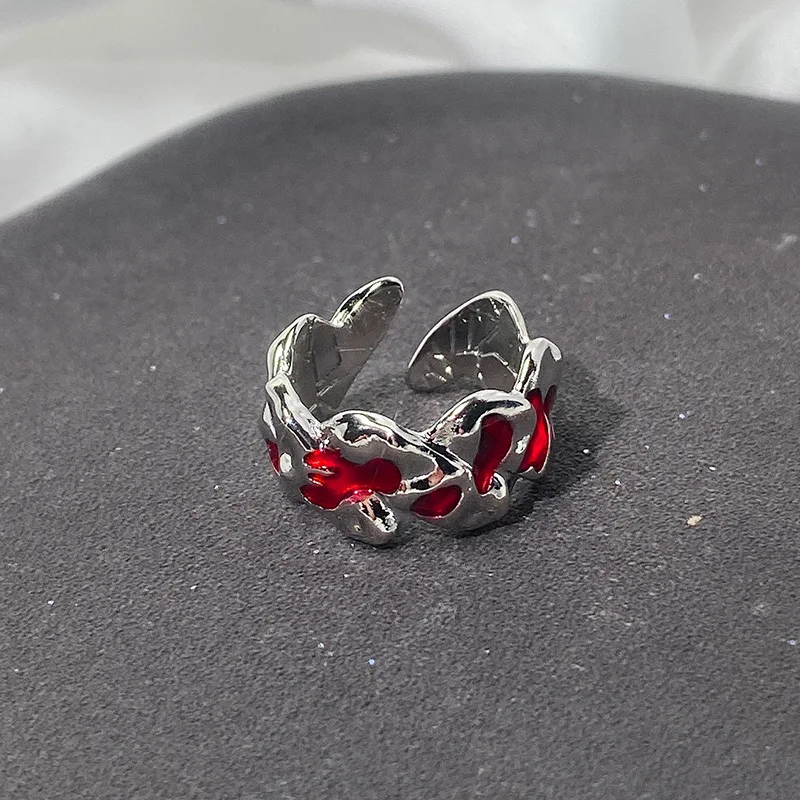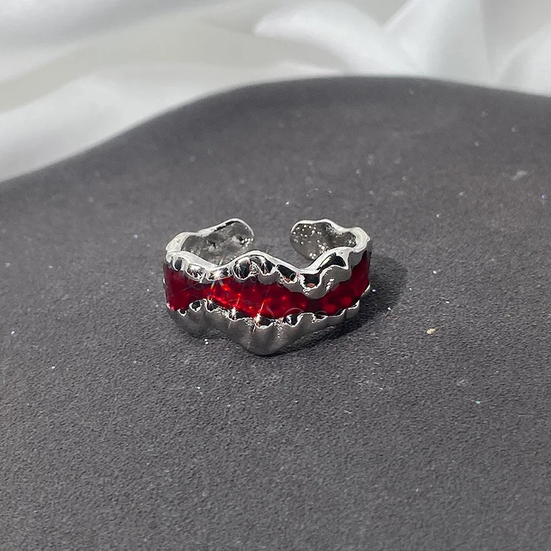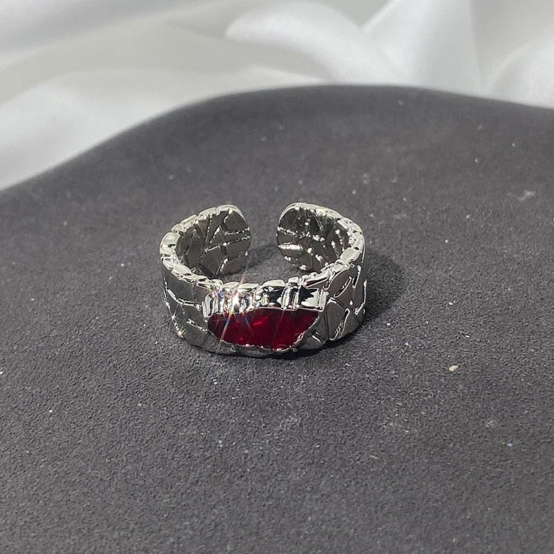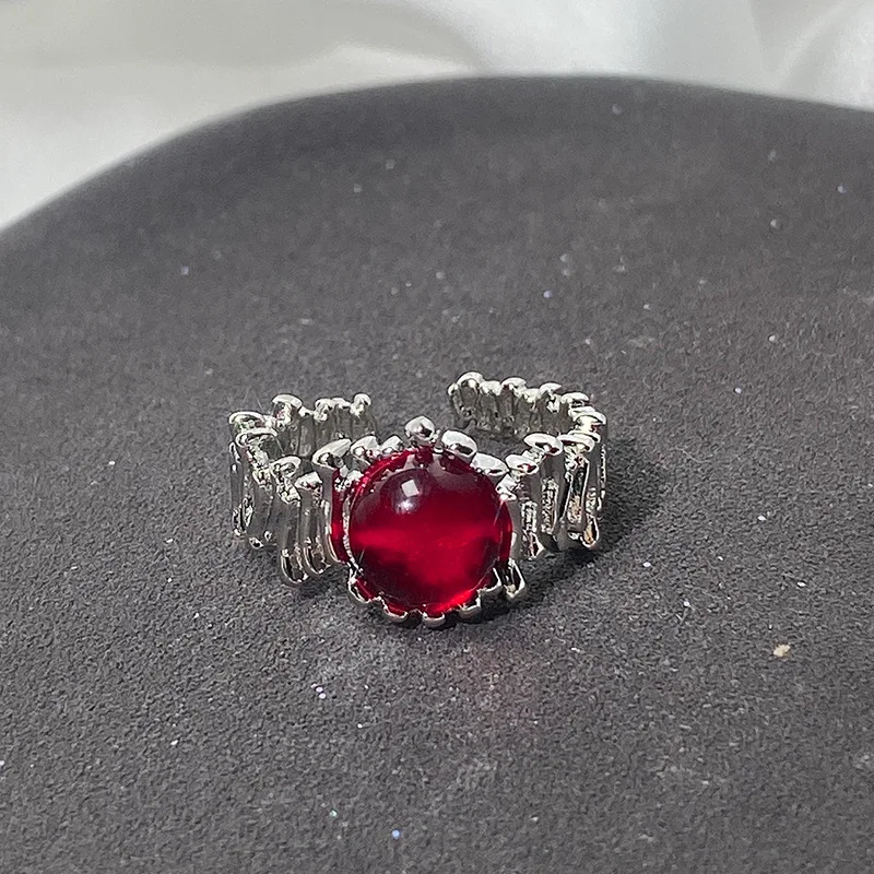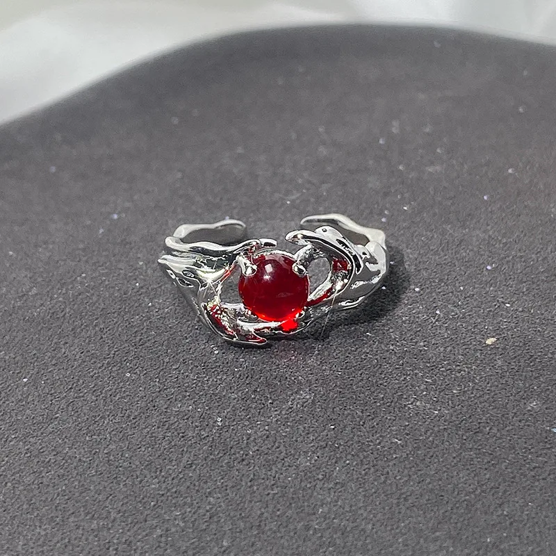 Lunivop Irregular Gemstone Ring Aesthetic Girl Hollow Red Stone Ring Women's Liquid Hollow Ring Vintage Jewelry Accessories