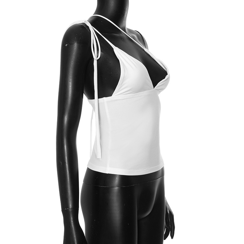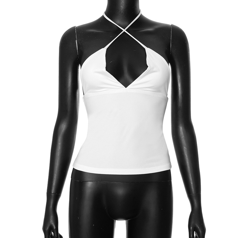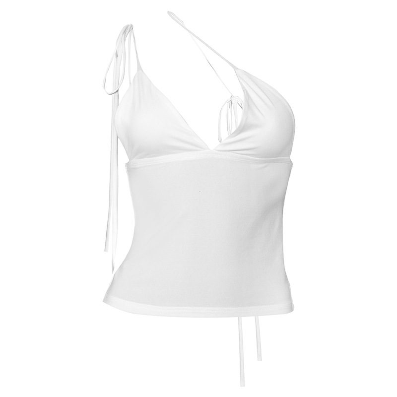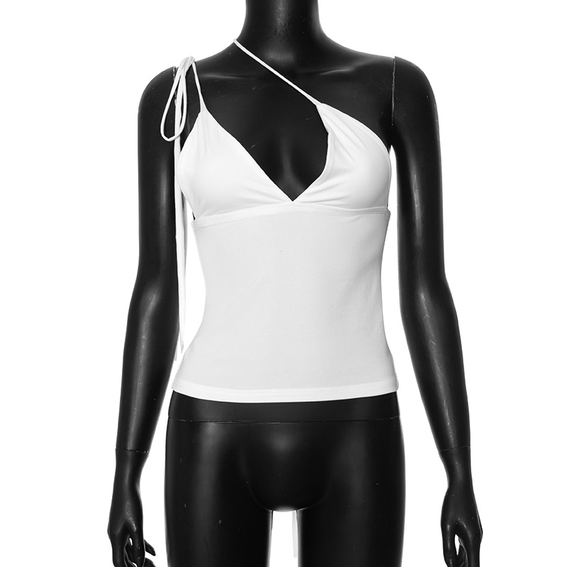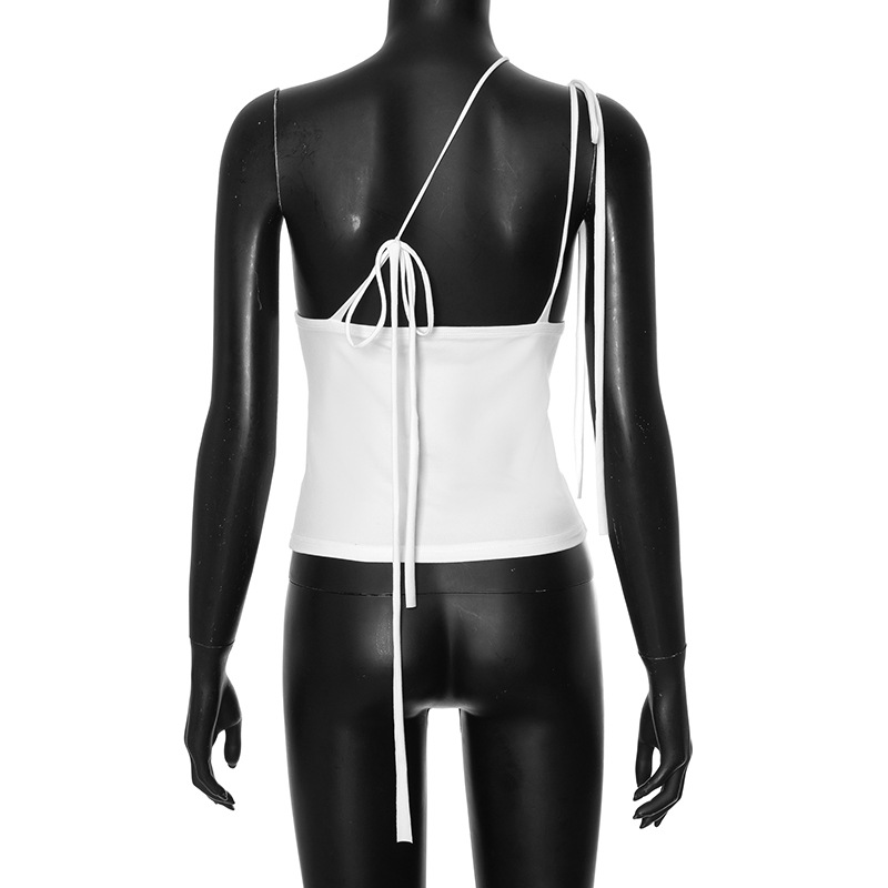 Lunivop Irregular Lace Up Crop Tops Women Y2K Clothes Sexy Tanks & Camis Red White Black Summer V Neck Tops For Women