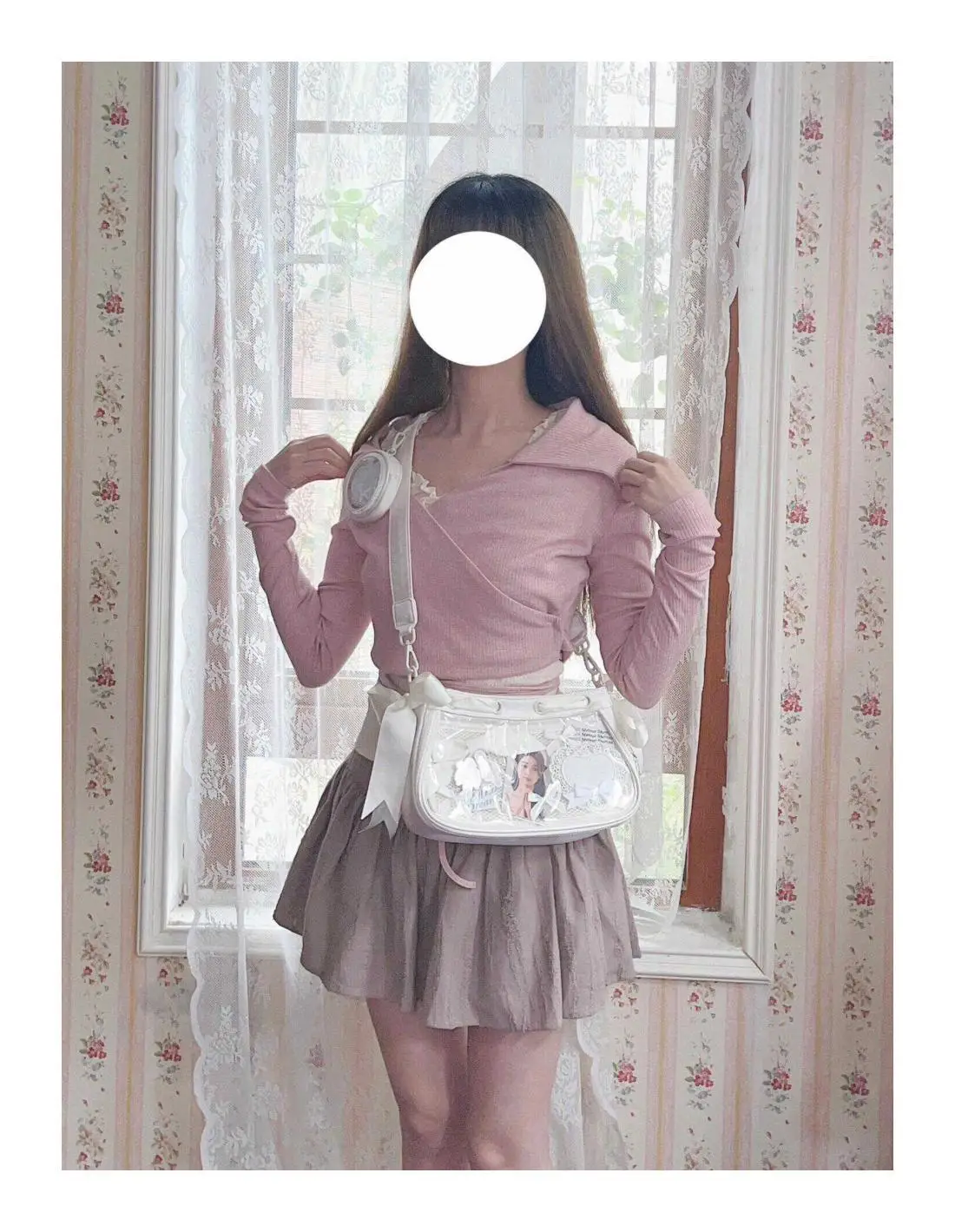 Lunivop Japanese Transparent White Ita Bags Women Lolita Bow Casual Messenger Bag Female Harajuku Sweet Cute Handbag Aesthetic