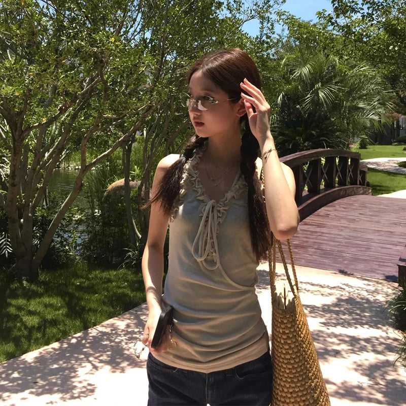 Lunivop Japanese Y2k Tank Tops Women Sleeveless V Neck Crop Tops Streetwear American Retro 90s Backless Camis Tops Summer