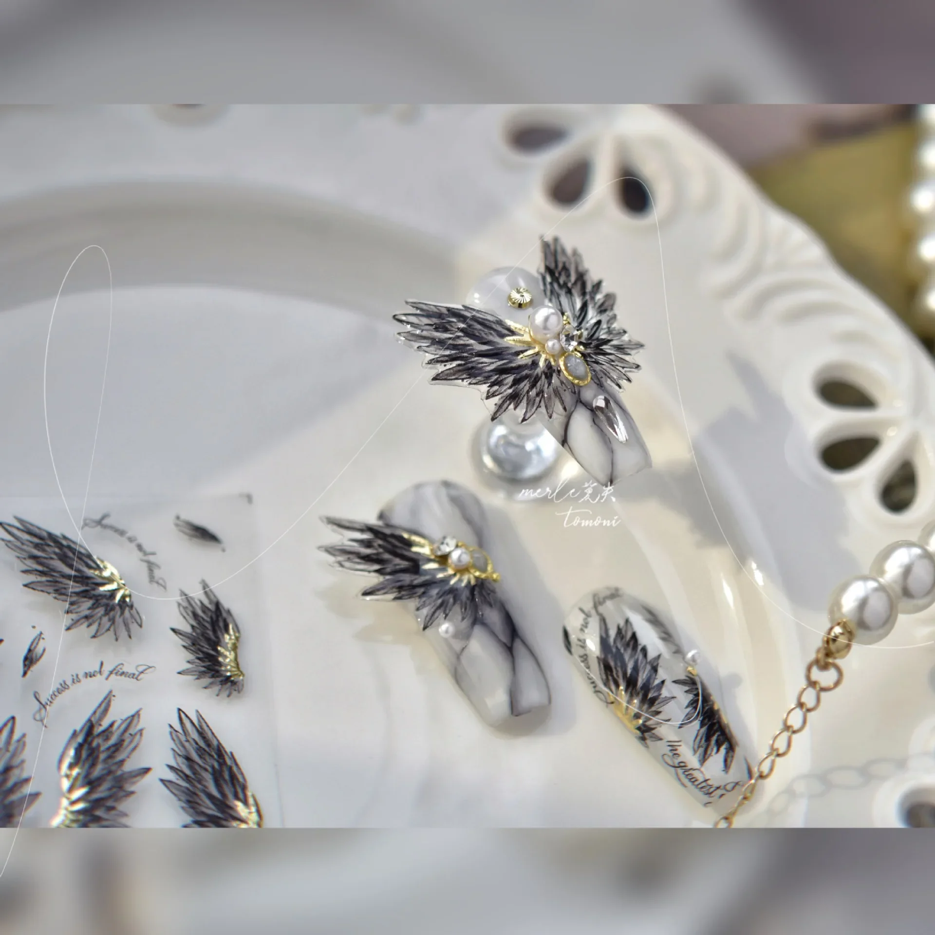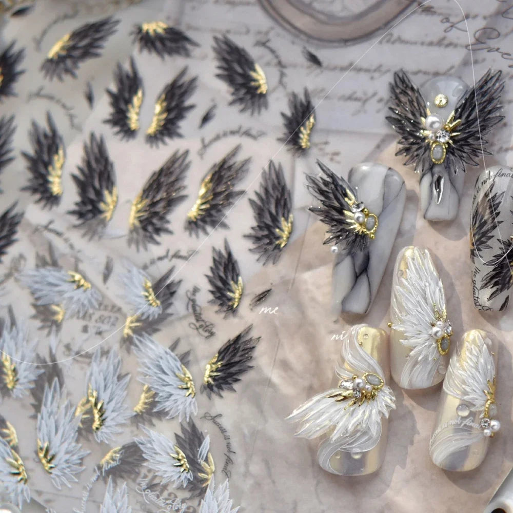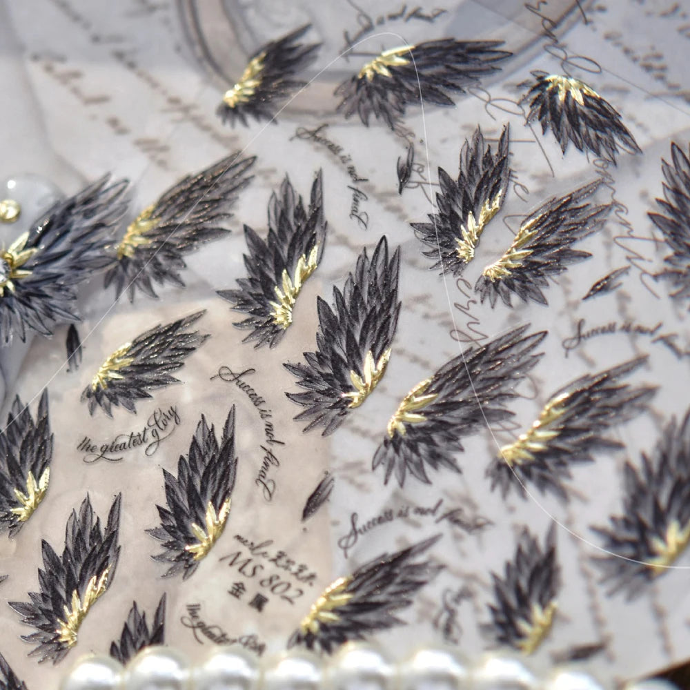 Lunivop Jelly Black Wings Feather Shiny Purple Wing Butterfly Soft Self Adhesive 5D Nail Art Decoration Sticker Manicure Decal Tool DIY