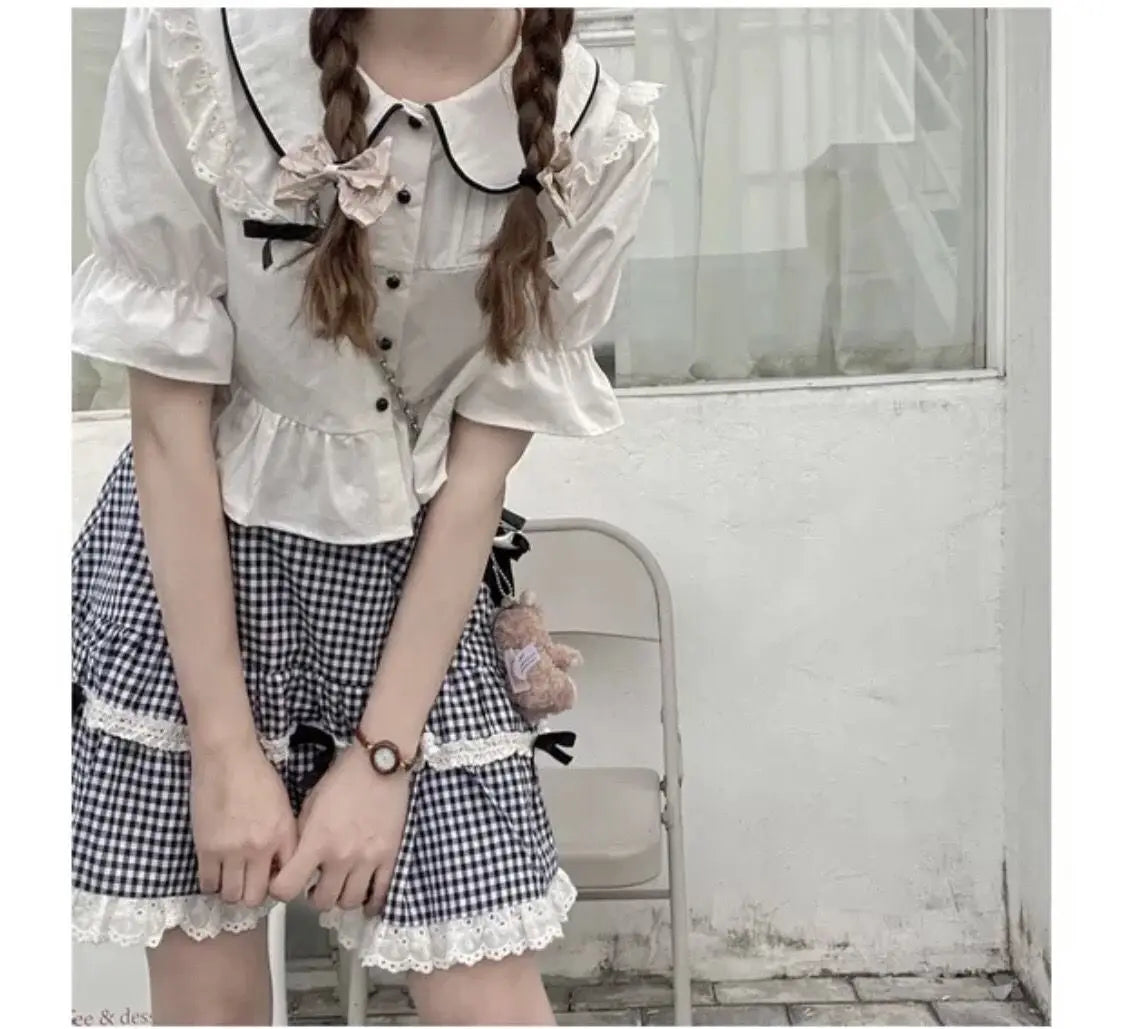 Lunivop Kawaii Plaid Women Short Skirt Lolita Ruffle Japanese Style Lace Bow Mini Skirts Cutecore Sweet Pleated Preppy Skirt