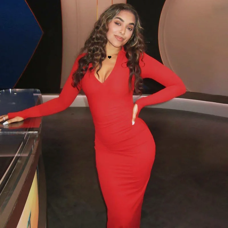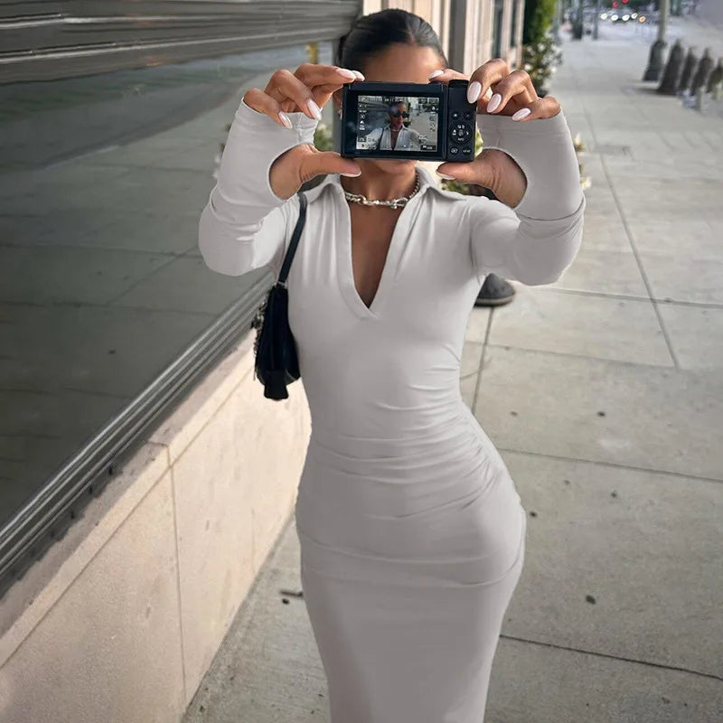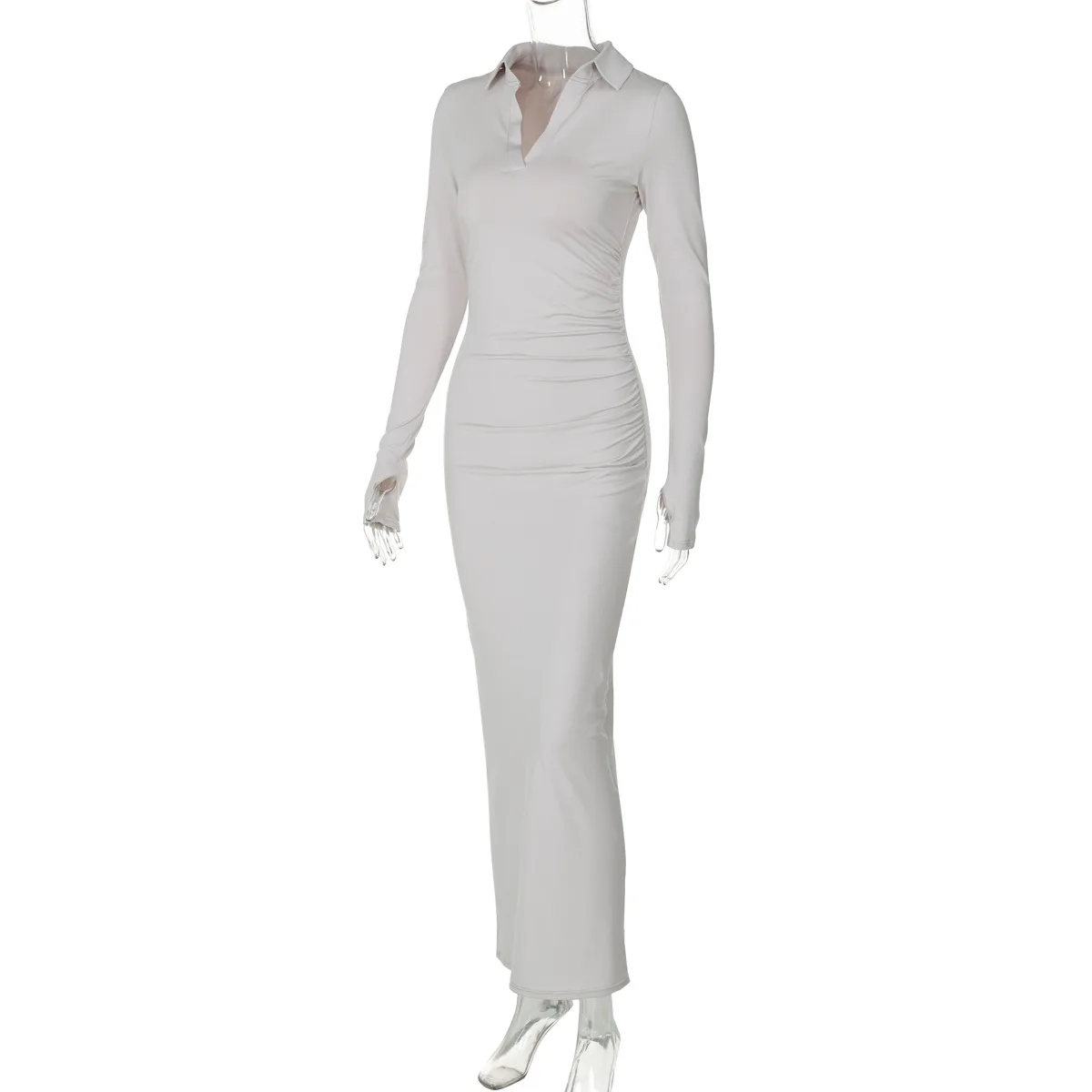 Lunivop Knit Turn Down Collar Llong Sleeve Bodycon Ruched Shirring Long Casual Dress Fall Y2K Streetwear Manufacturer Clothe