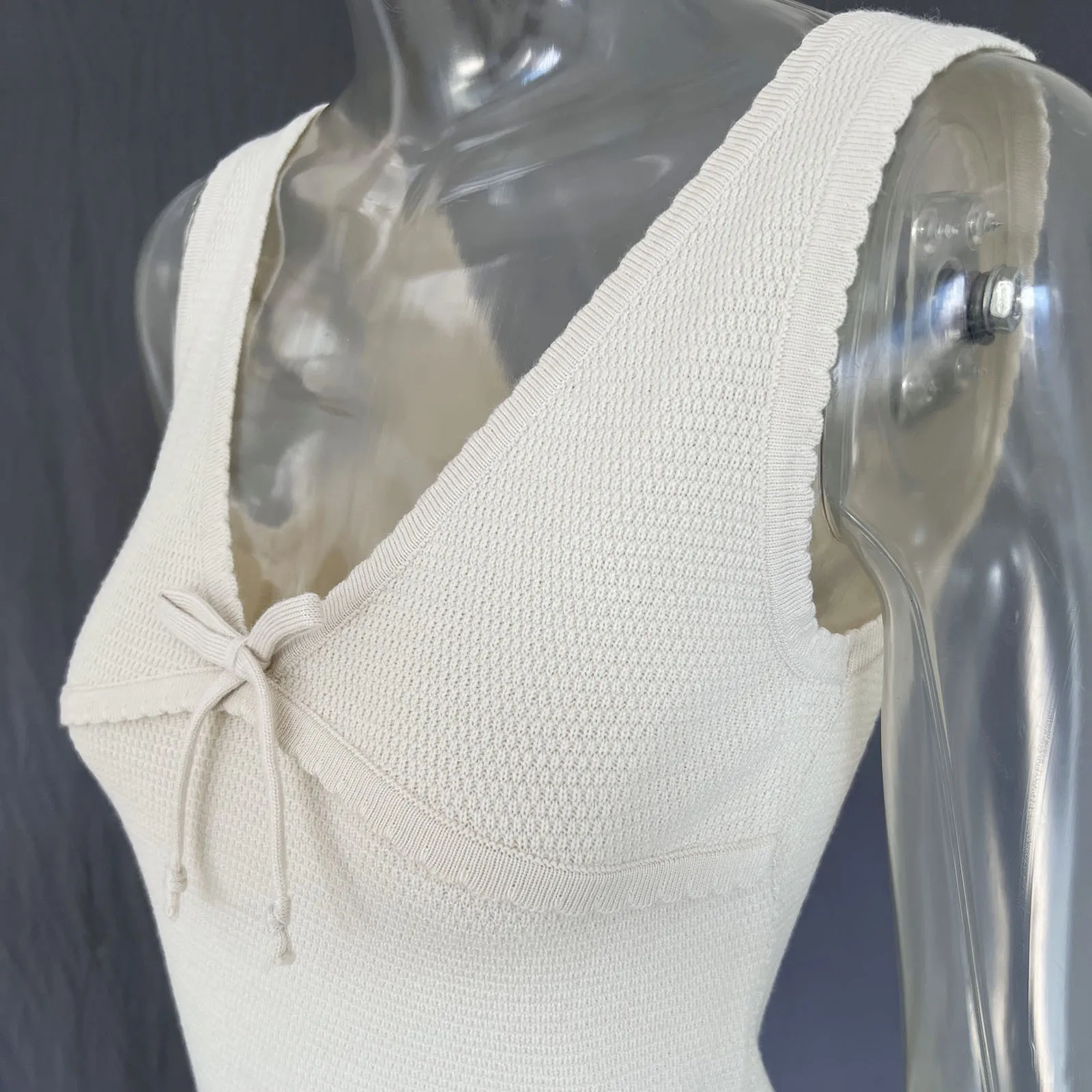 Lunivop Knitted Deep V-neck Bow Women Crop Top Blue Patchwork Spaghetti Strap Tank Top Female Spring Slim Casual Streetwear 2024