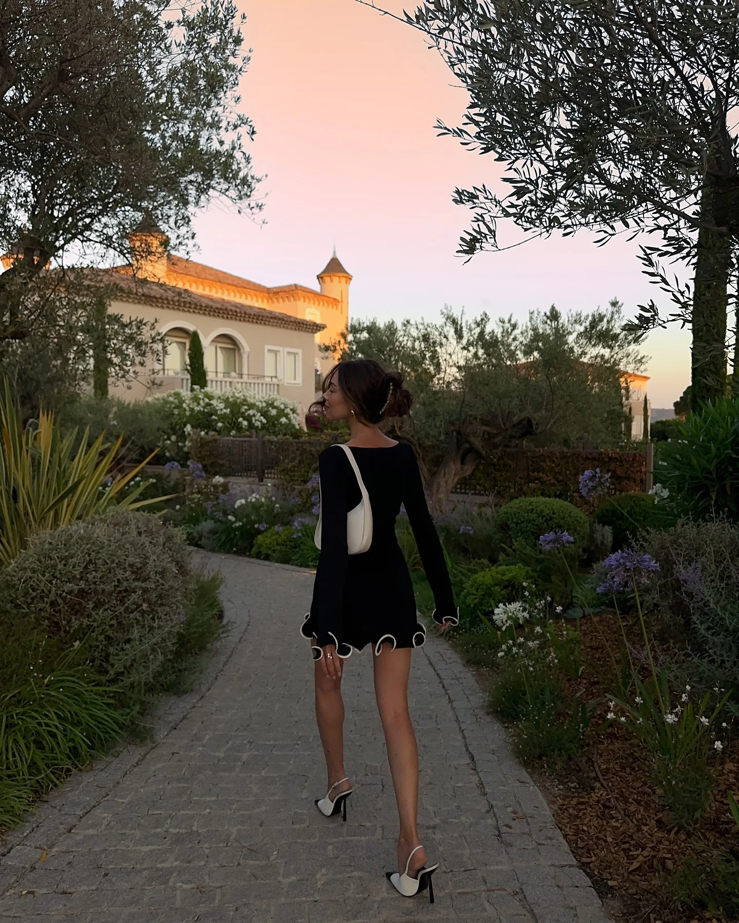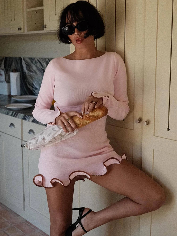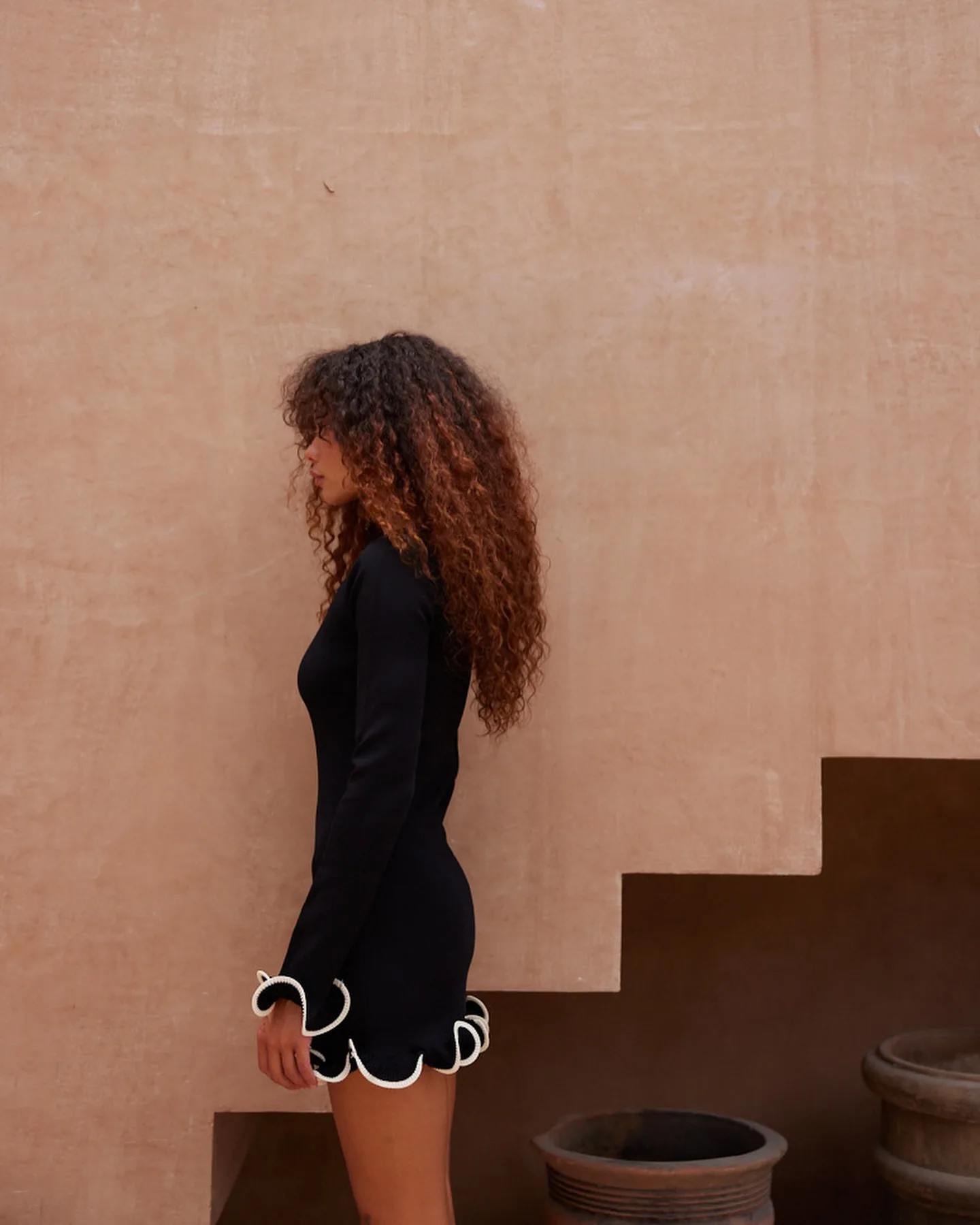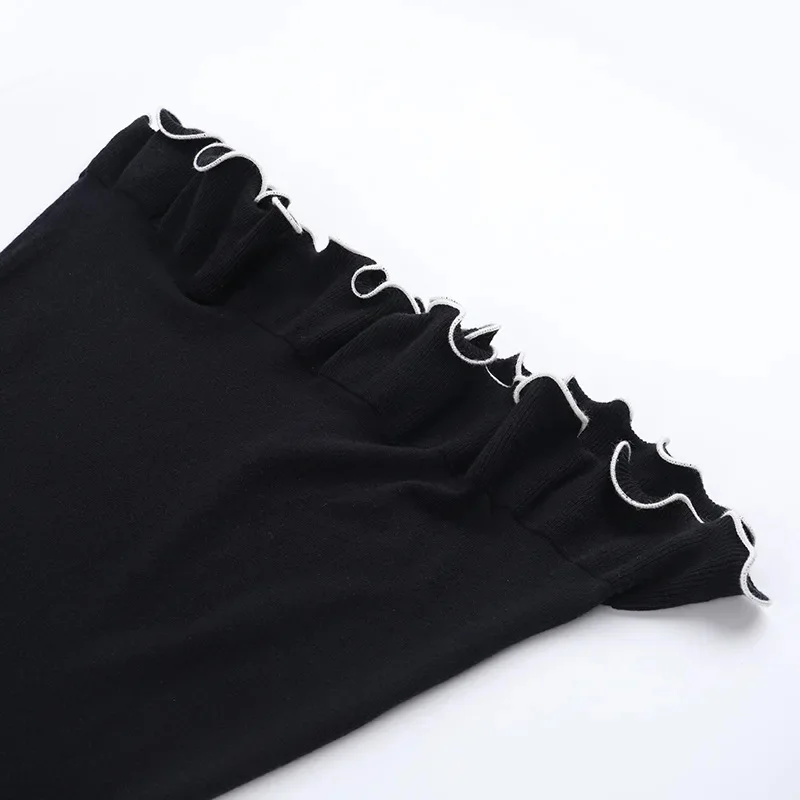 Lunivop Knitted Sexy Round Neck Ruffles Dress Women Black Long Sleeve High Waist Dress Female Autumn Slim Elegant Party Clubwear