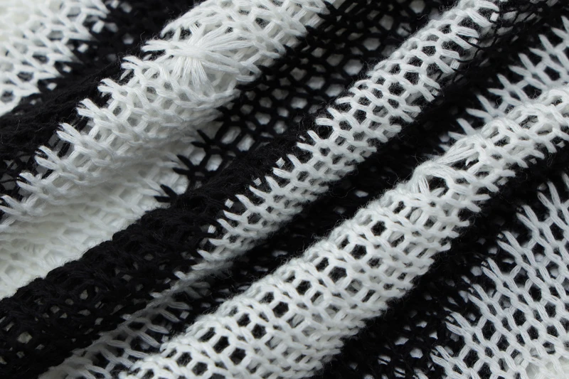 Lunivop Knitting Rib Long Sleeve Striped O Neck Hollow Out Mini Daily Women'S Dresses Summer Autumn Casual Clothes