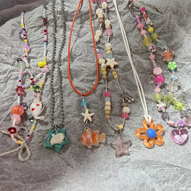 Model Number: Jelly Shell Resin Star Pendant Metal Beaded Necklace