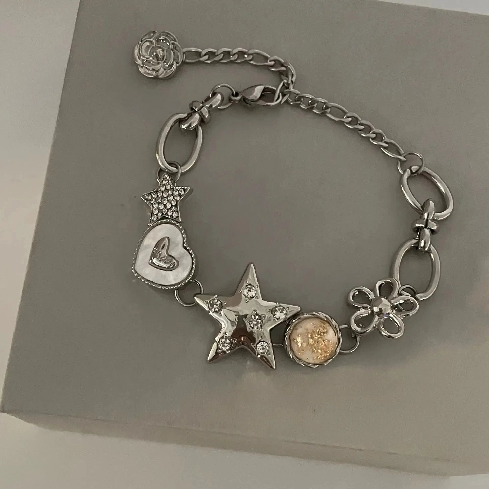 Lunivop Korean Fashion Cute Aesthetic Heart Star Chain Bracelet For Women Y2k Charms Jewelry 2000s Scene Accessories Anniversary Gift