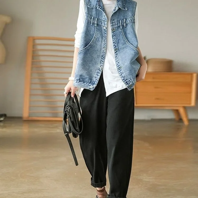 Lunivop Korean Fashion Denim Vests Women Vintage Retro Casual Waistcoat Streetwear Big Pockets Coat Button Up Clothing 2024