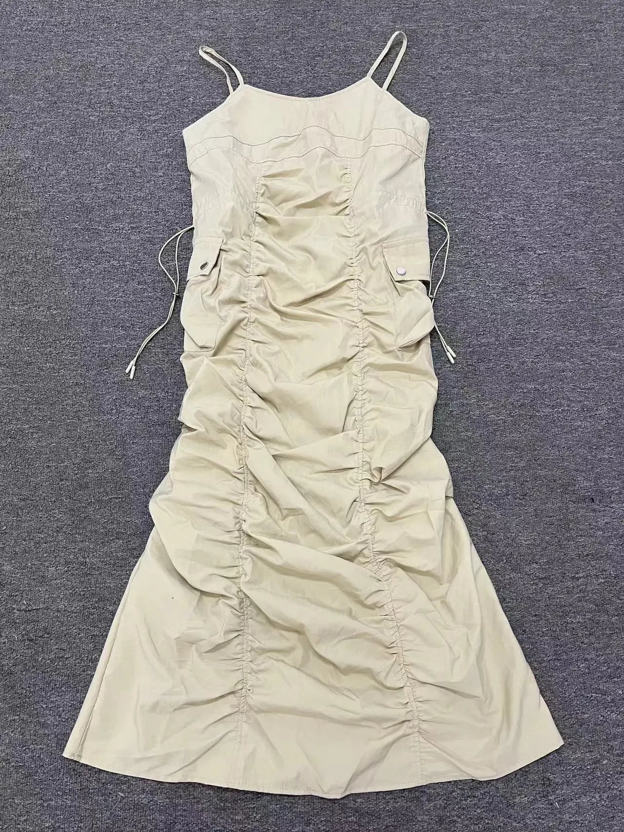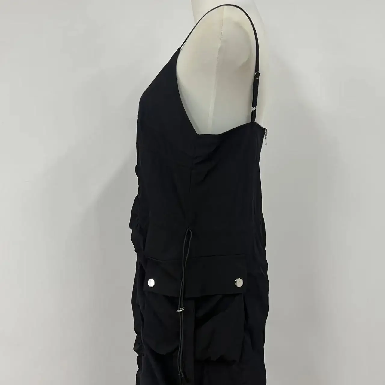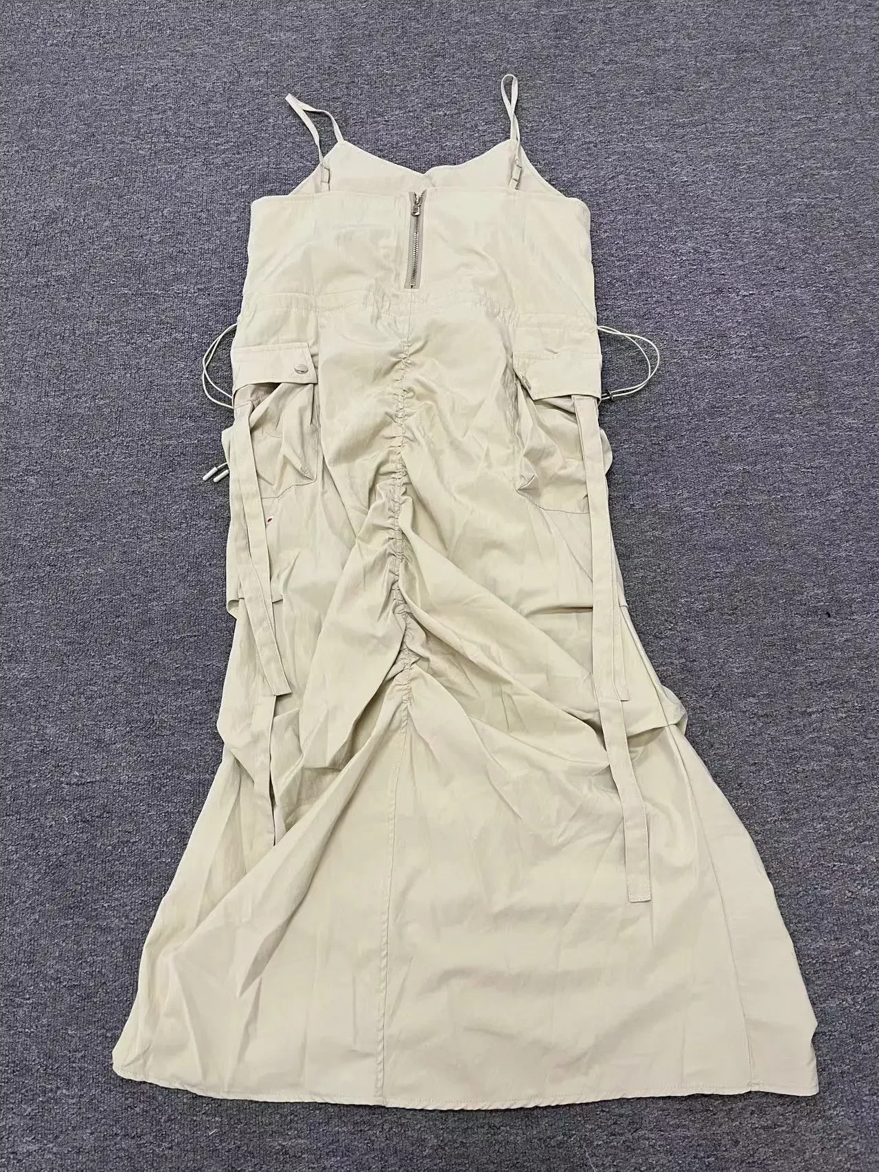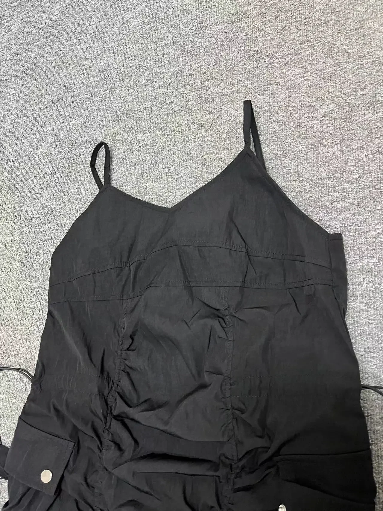 Lunivop Korean Fashion New Summer Dress Women Pleated Design Large Pockets Waisted Midi Dress Female Sleeveless Solid Black Long Dresses
